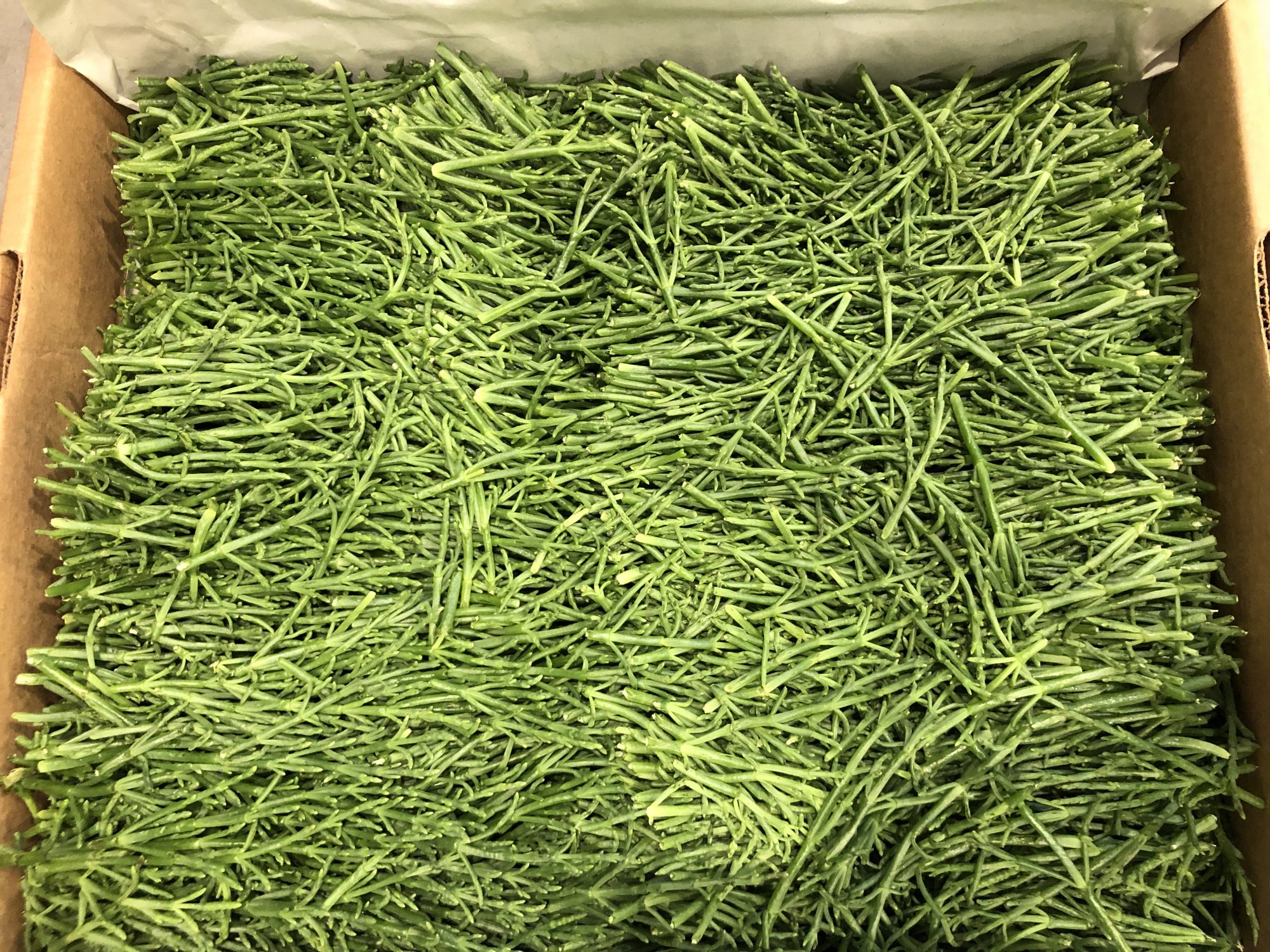 Sea asparagus is the correct term. They're native to most of the world including Europe. It's hard to describe their texture, but it's kind of like a cucumber and seaweed combination but also not the same or lending to either. The color intensifies with a very quick flash blanching and dunk into ice water. You can wash and eat them raw. They're a pretty nice snack along with plain celery and a light dip with a beer. Celery itself is pretty salty depending on the time of year you purchase it. Prices vary wildly depending on who you purchase from. You can easily grow it yourself in a contained bed or hydroponic system. You just need water with a higher salanity level.A kind of seaweed used like salt when cooking food. They are actually quite good. Can be used as salt substitute when cooking. Gives better color and taste to food when cooking.