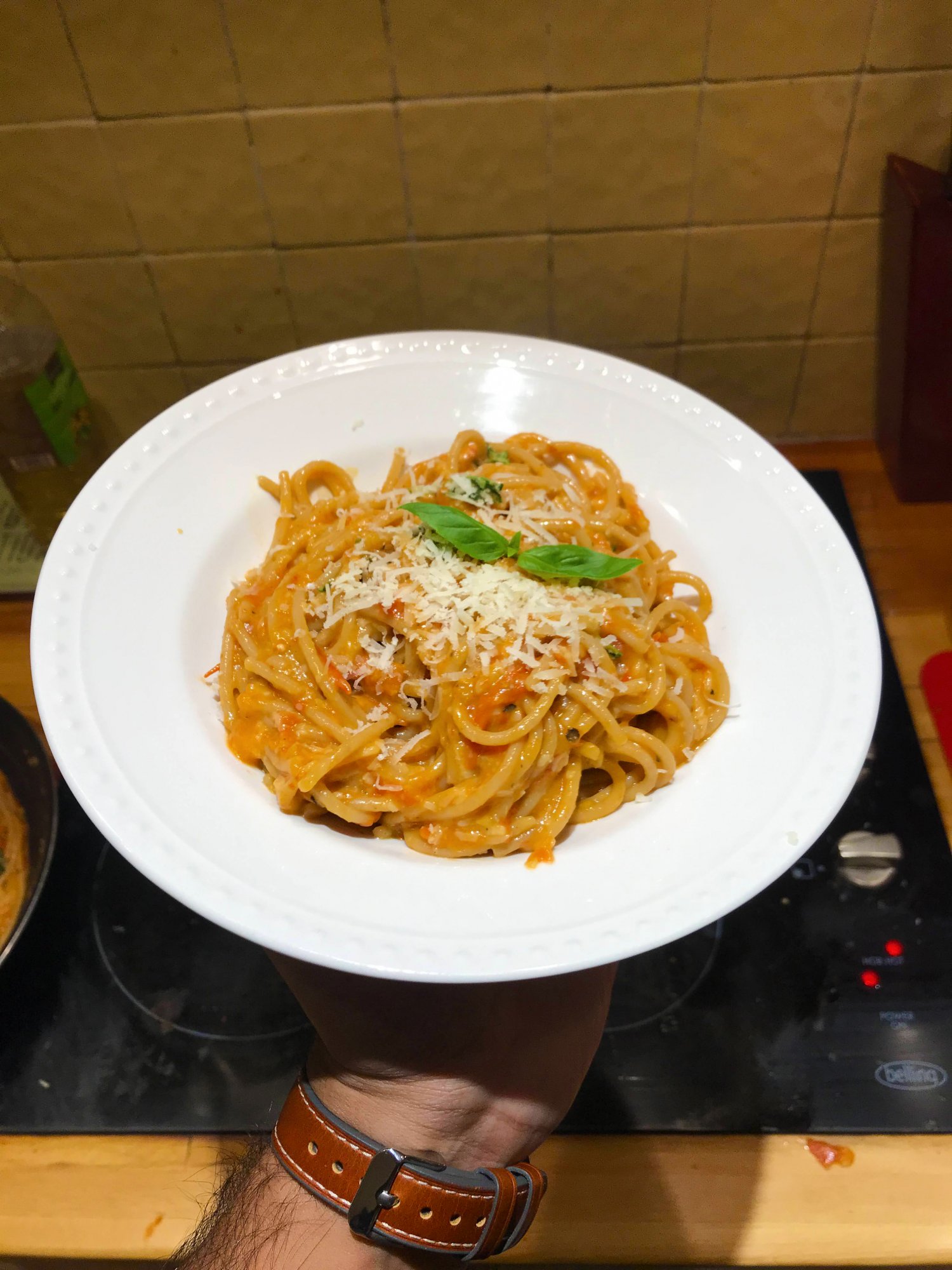 Did some pasta myself for dinner tonight. Made a really rustic roasted cherry tomato spaghetti.