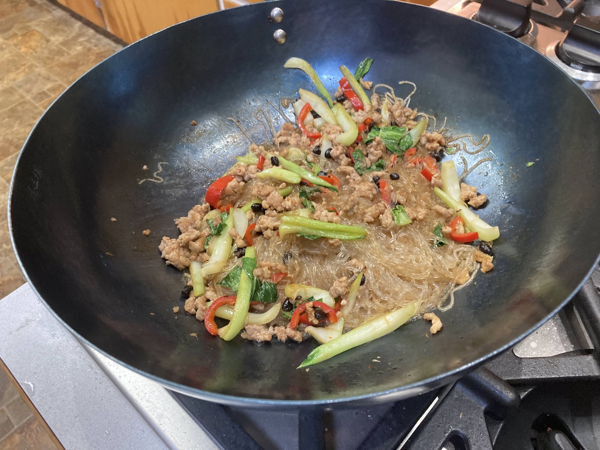 Oh, and dang my new wok is heavy. My old one is 40 oz, this one is 62 oz; I wasn't expecting it and the dismount/plating was... less than graceful (most of it stayed on the plate).