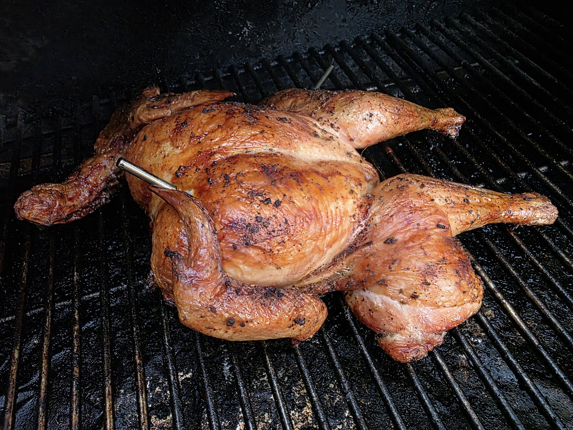 Man I’ve been staring at this for days now lol and it’s making me crazy that I can’t make it to the grocery to buy some wogs because my trusty truck is in the shop.Pellet grill smoked spatchcocked chicken (dry rubbed with Trader Joe's 21 season and marinated in spicy pickle juice for ~6 hours).