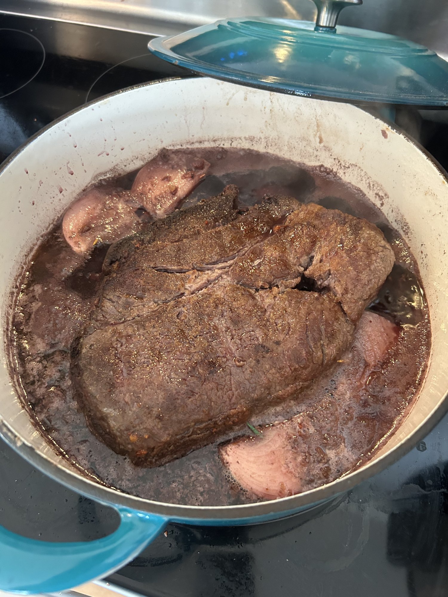 Add liquid ingredients & bring to boil, then reduce to a low simmer.