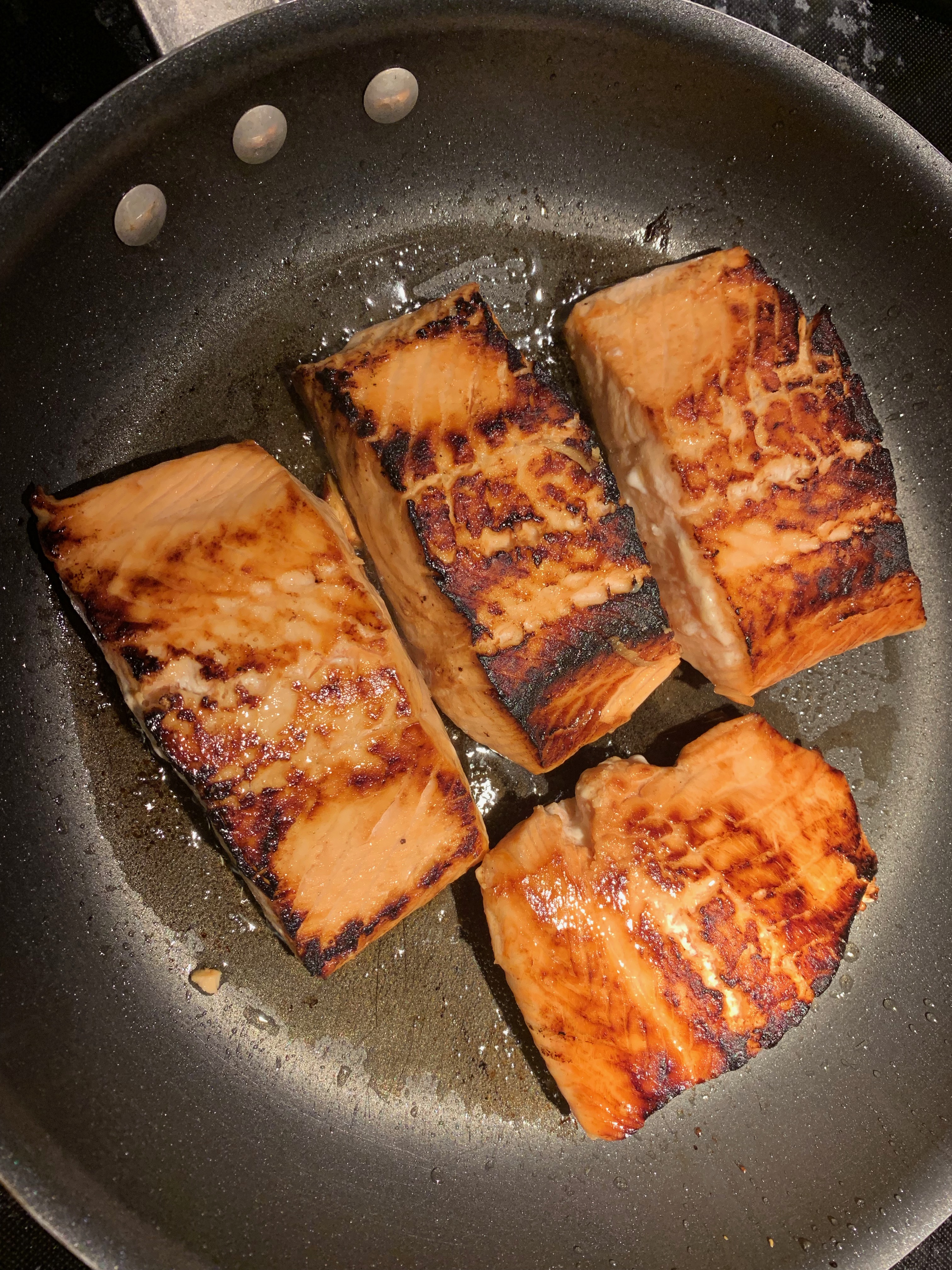 The cold truly set in today. I was going to grill burgers, but decided to go with Yuan Salmon, instead. Served over medium grain white rice and liberally salted with pink Himalayan salt. The key to good salmon is to not overcook it. A nice browning on the outside and moist inside.