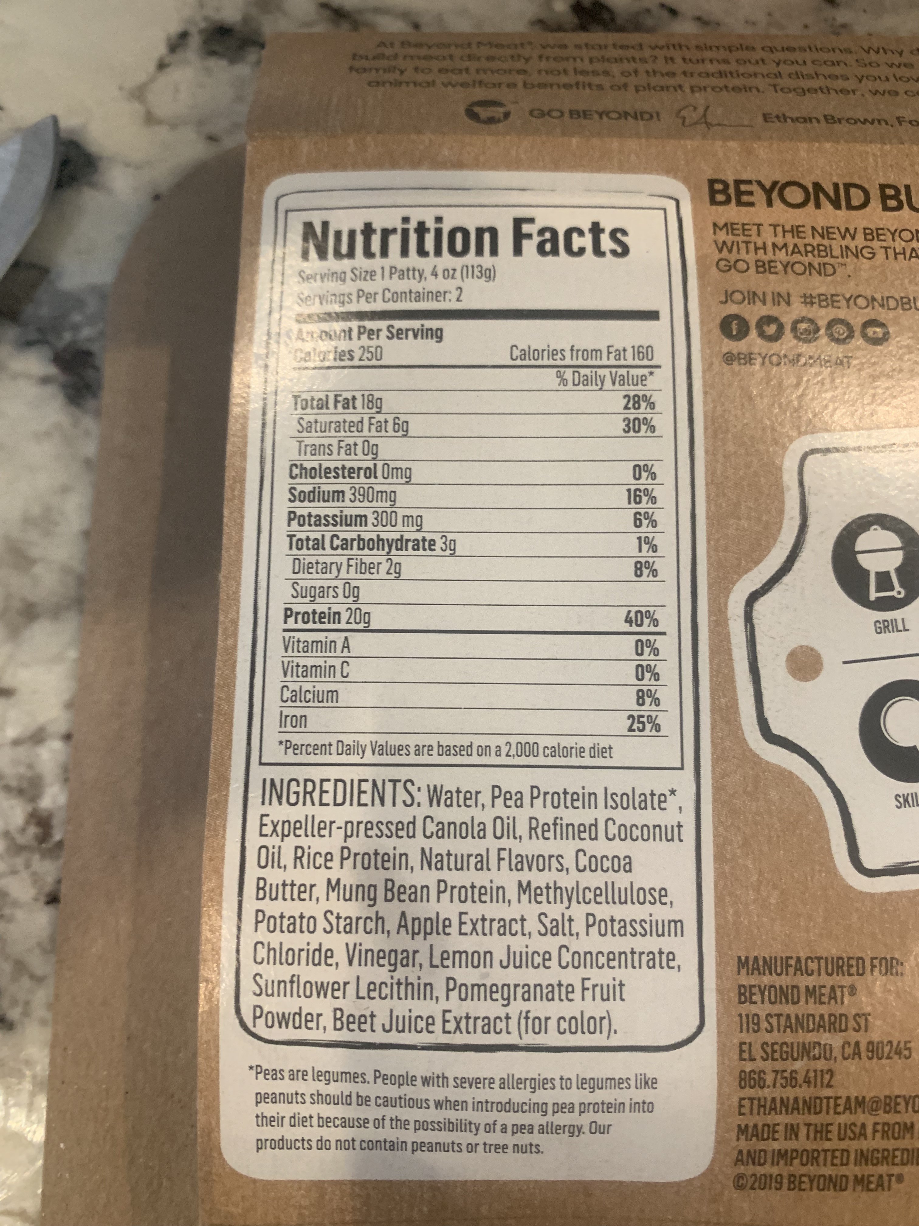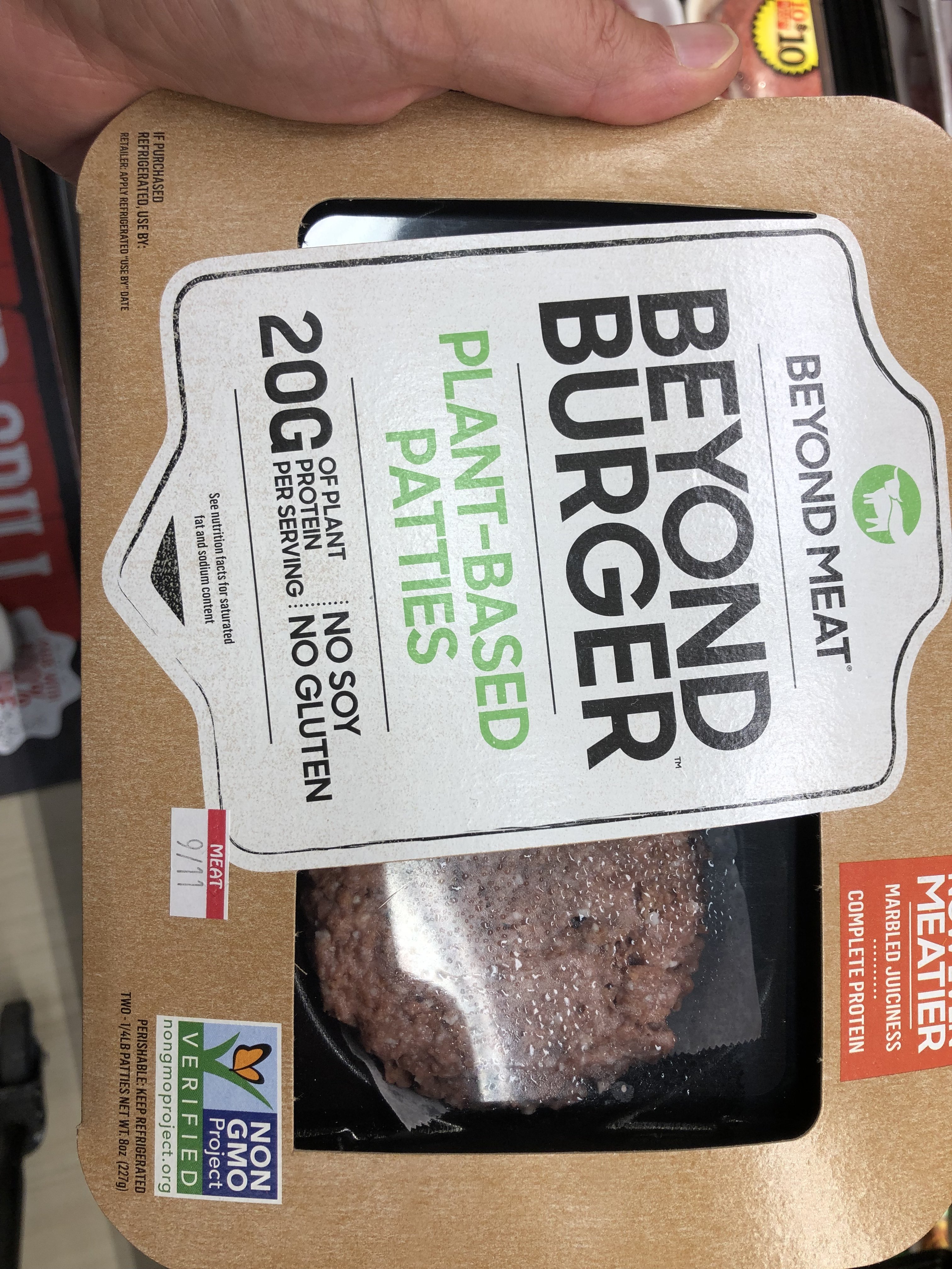 However I think I just stepped into the future, and I’m impressed! Beyond Meat, it looks like beef, has the consistency of hamburger, tastes and chews like ground beef. And when cooked (4min per side, low heat), the insides still looked pink, which is how a I like my hamburgers. Compared to the veggie burgers I was eating 2 decades ago, this is amazing, yet I could not get the wife to try it. She had Taco Bell. :rolleyes: