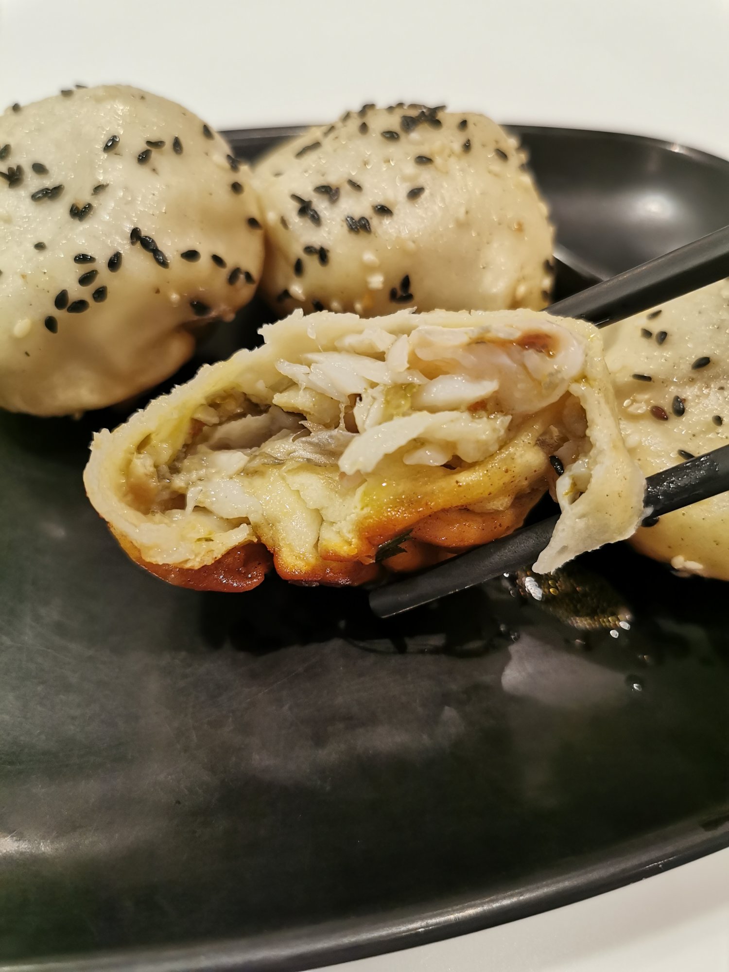 I walked past this place quite a few times and every time I walked by there was a line or the place was packed with people inside it. Did not look all that great but I figured it doesn't hurt to try something new while traveling so in I went an ordered 4 pieces for 18 Yuan to try. These are bun like and pan fried (not deep fried). They were filled with fish and cabbage with had a sour and spicy taste to it. Was actually quite good once my taste buds made a huge adjustment to try and adapt to something I had not had before. Top part had a steamed and soft texture to it and bottom part a bit on the flaky or toasted side. Chinese make something similar in soup form with the fish and cabbage although quite spicy.
