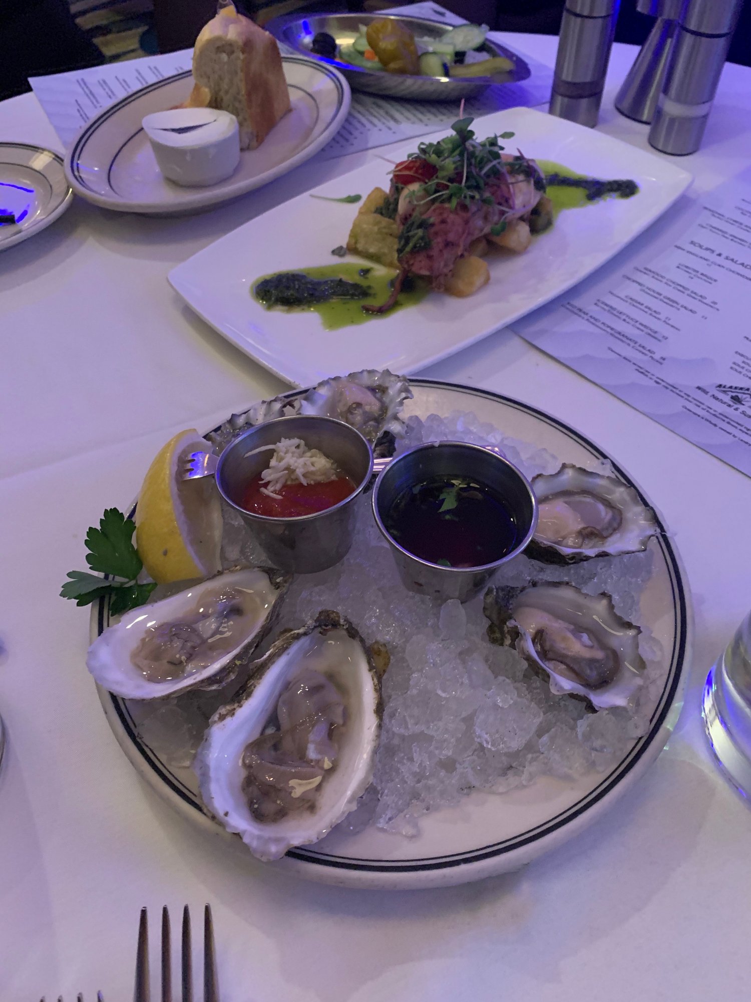Lol! Just six with Spanish charred octopus (background) and lobster bisque for appetizers...swordfish entree. I’m home semiregretting it all. 😆