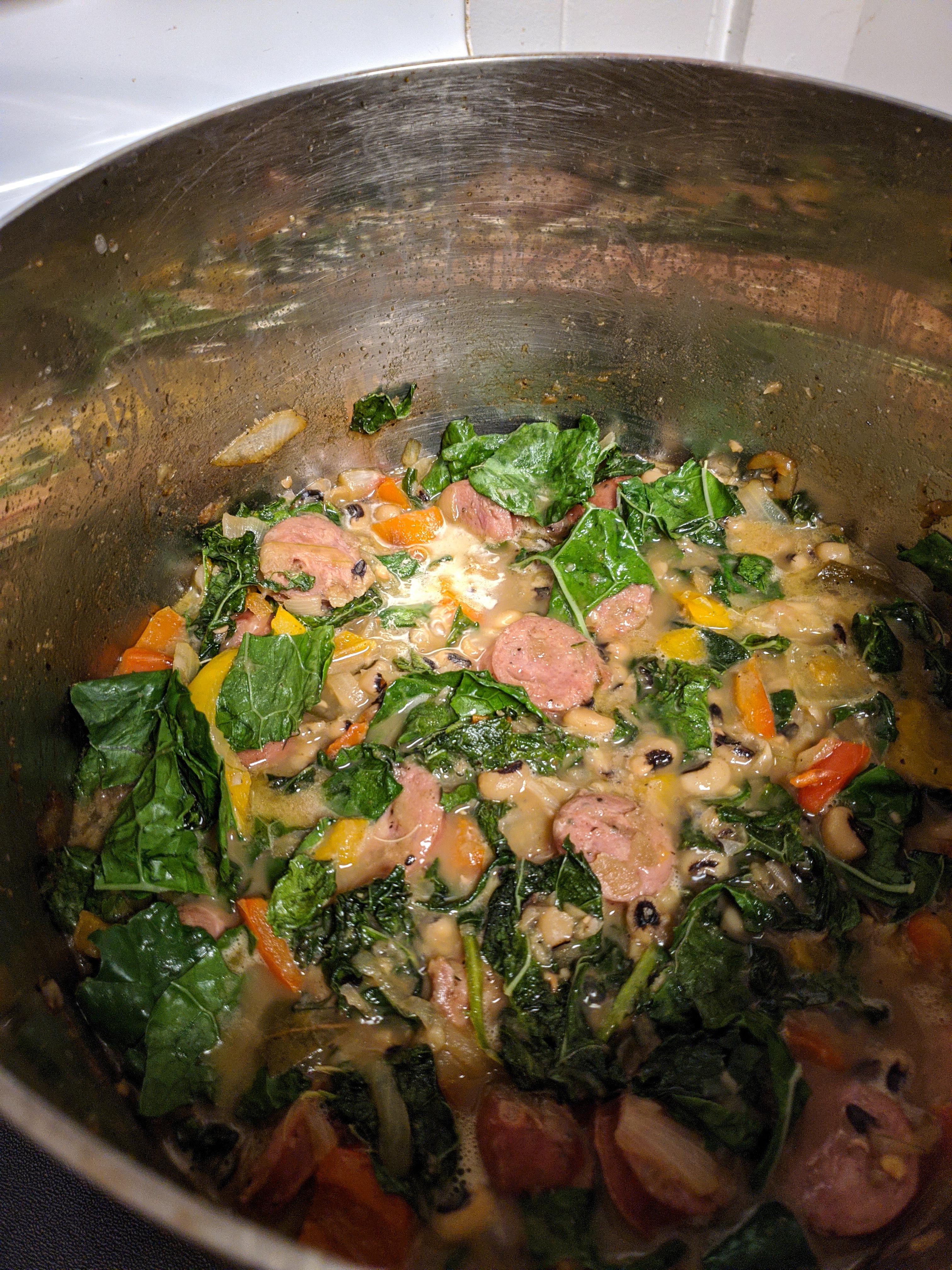 At that point, the various meats were returned to the copper dish, and now, it will be let simmer for around four hours or so.