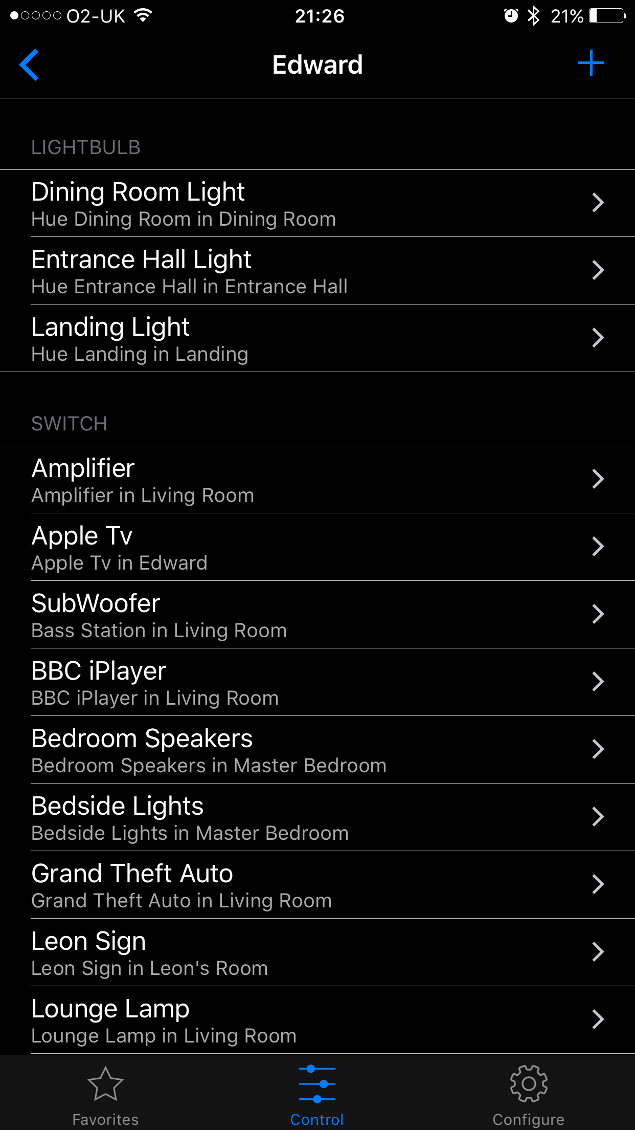 turn off upstairs lights" lights are organized by room, rooms in zones