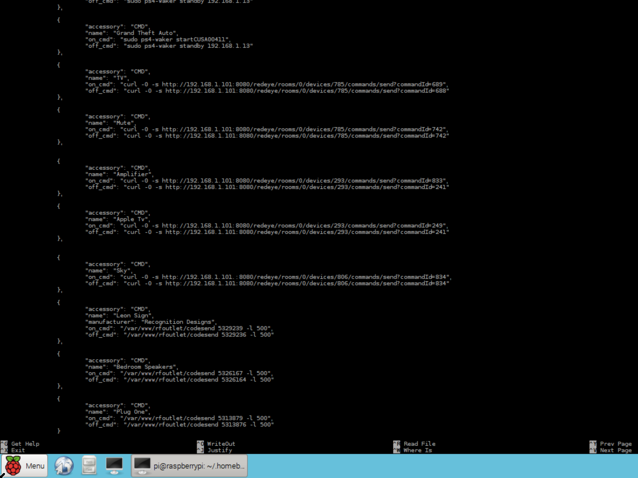 Raspberry Pi running homebridge which allows Siri to interace with non-HomeKit devices.