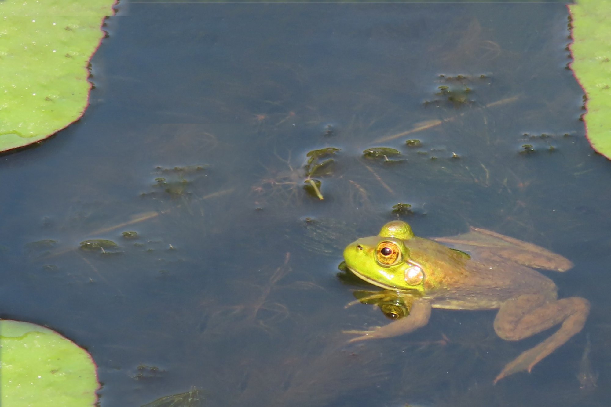 I find frogs much easier than birds in flight. Here is another.I have taken better shots with cheaper cameras of frogs in the past because I got close to frogs that did not jump away when I approached. Every frog is different but most just jump away when you move.