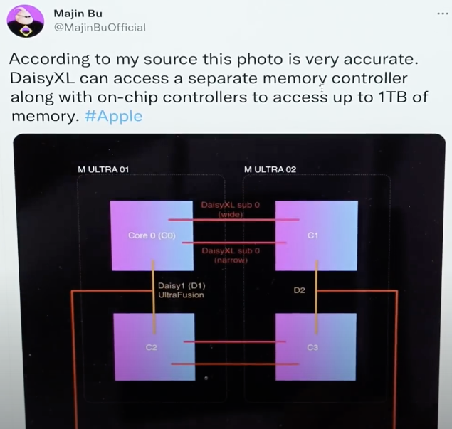 If all they have is a M1 Max with UltraFusion connector is perhaps build a PCI-e expansion module and attach that to a Max via the Fusion connector. And then claim that it isn't another M1 Soc. Or perhaps once again 'hid' something in the UltraFusion connector interposer die to get them some lane provisioning .