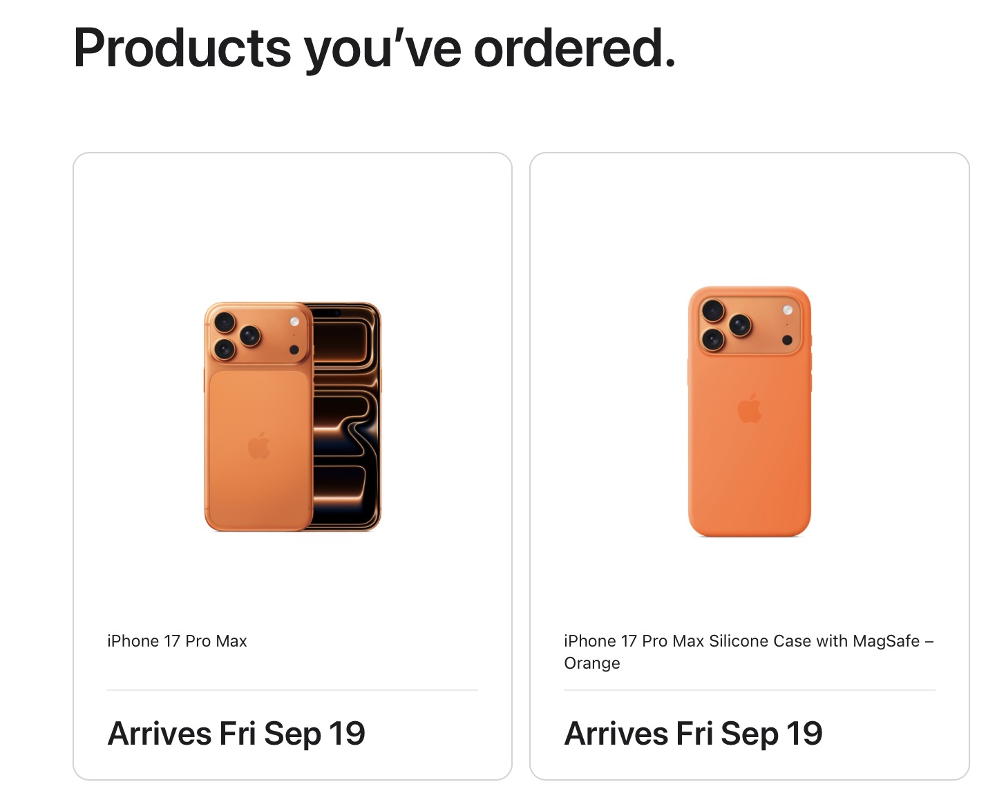 Same for me with my 1TB silver 17 PM. The order system is borked!Silver Pro Max 256gb - Had my preorder preset, clocked the order in at 8:01 EST, and got a 9/25 delivery date. 😔