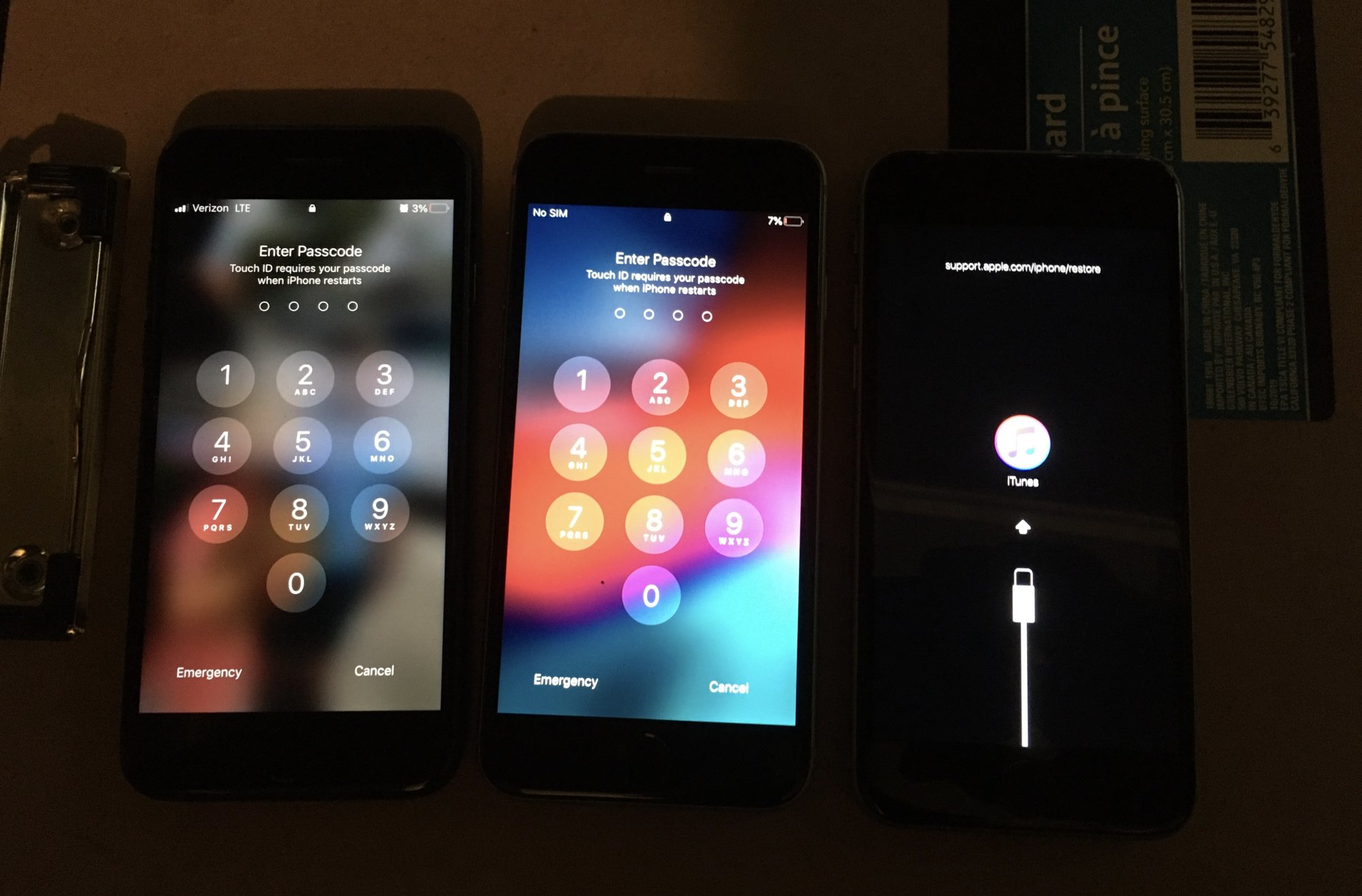 Grabbed a tossed couple of bags of electronics stuff (cables, headphones, cameras, etc). Included in the treasures were three iPhones. Two 6s and one black 7. Two of them require a passcode, one might not. My guess right now is they are 32 g models, but not sure.