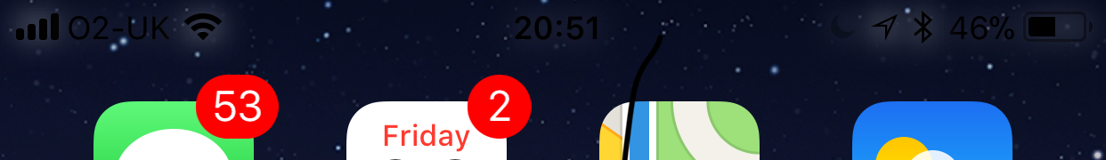 Feenician macrumors 603 Jun 13, 2016 5,315 5,106 Sep 22, 2017 #2 Broric said: Is this a feature or a bug? View attachment 720128 Click to expand... Definitely a bug. I’ve seen people report a number of issues with the status bar going transparent. Quick restart should sort it out for now. Reactions: Broric and tgara