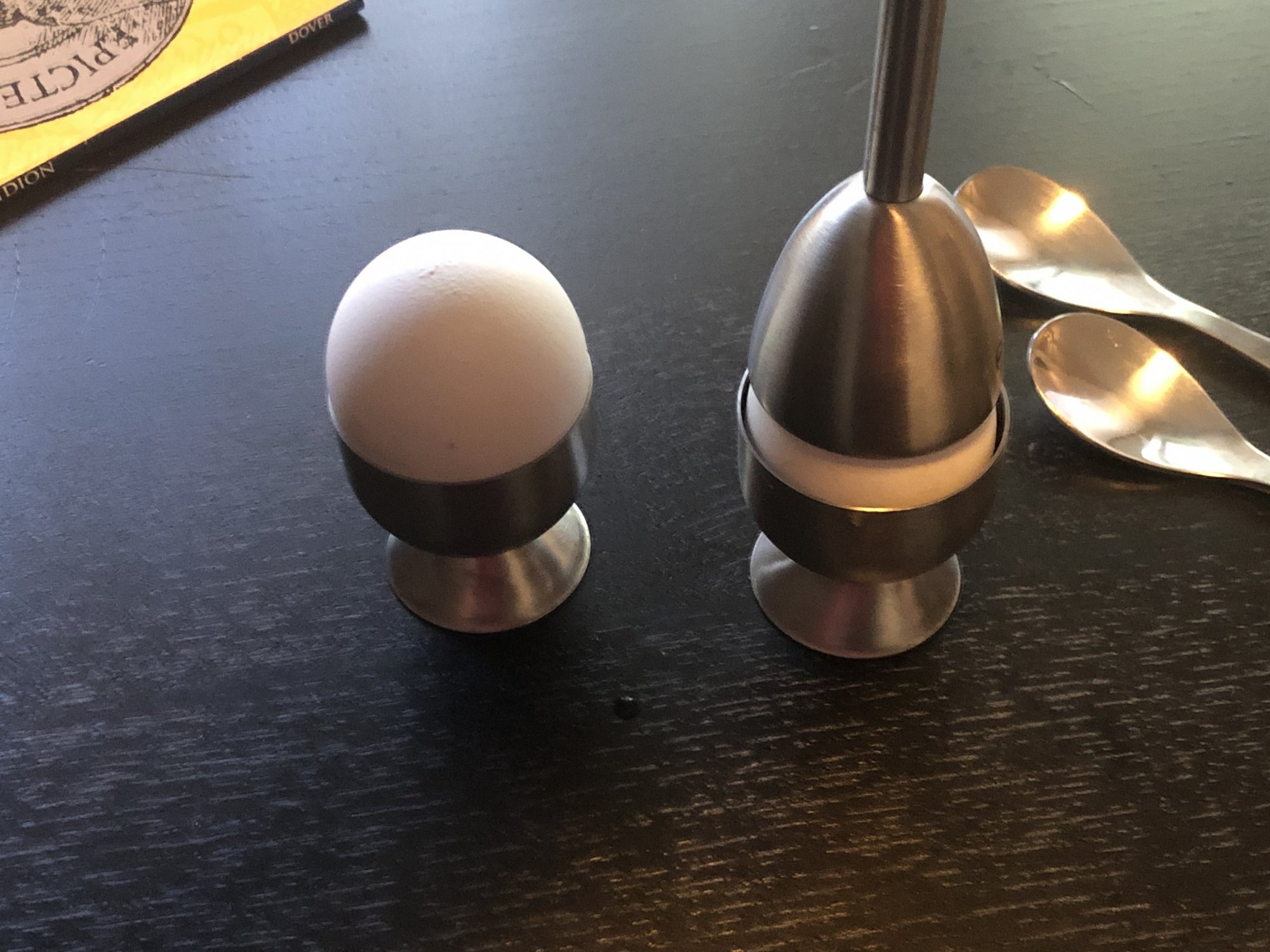 Ordered a set of soft boiled egg holders, 2 spoons, and most importantly an egg top shell cutter for $13 which will be delivered tomorrow.