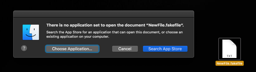 For example, if I make a totally fabricated file format, and double click it, I get this message in Finder: