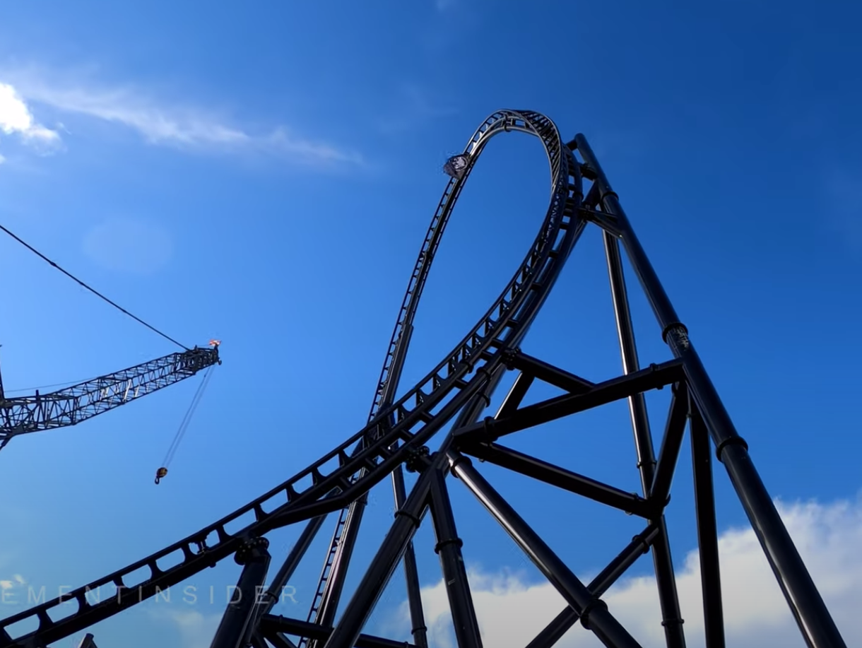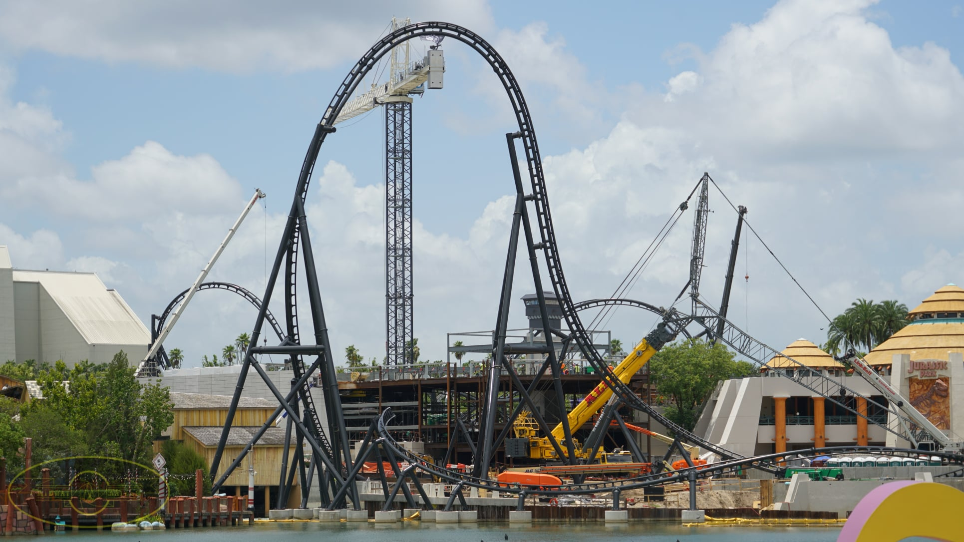 That's the new Jurassic Park / World coaster at Universal Orlando, currently being called the "Velocicoaster", supposed to have some slick theming, but that photo is the 140+ ft high top hat, that you enter from a second mag launch area, with a ~70MPH over and down ... so stoked, er, you know, whenever we actually make it back.