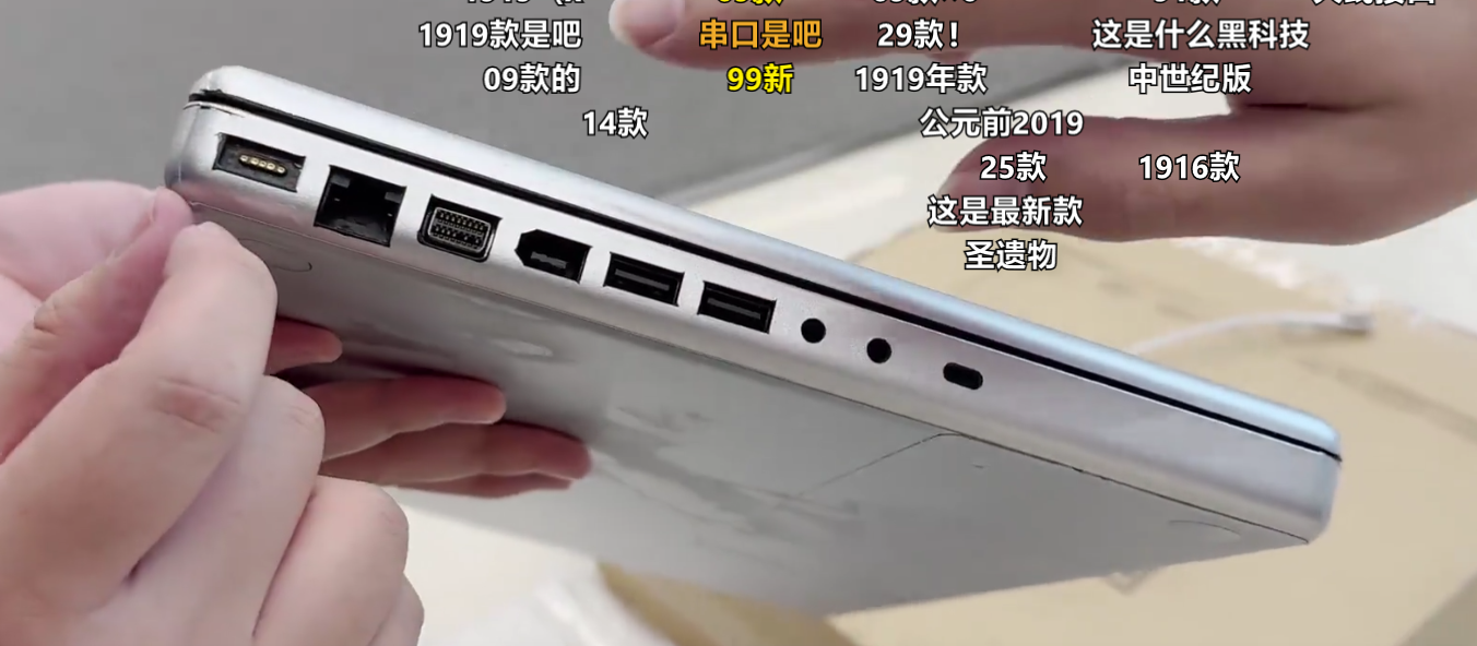As others have said, the port selection looks identical to that on a polycarbonate MacBook , but it seems to lack the button bar at the bottom of the trackpad that those had: