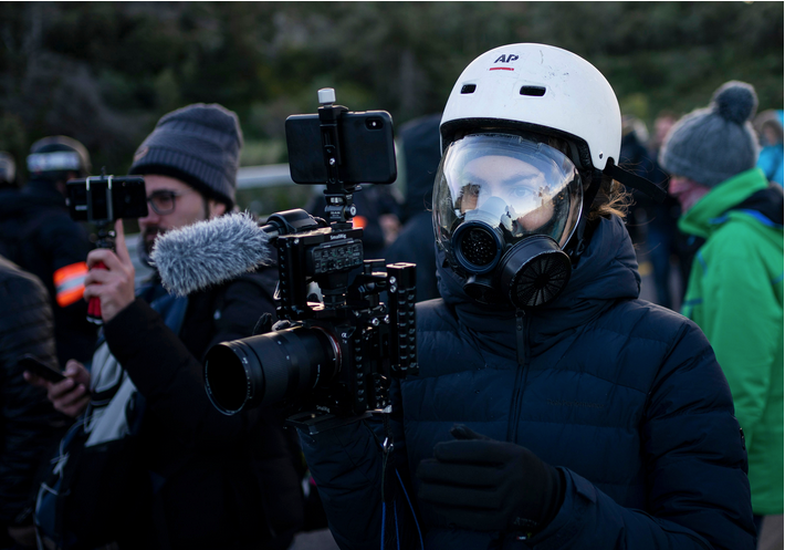 Being seriously behind-the-times, I could use some help figuring out the gear this female journalist (?) is using...