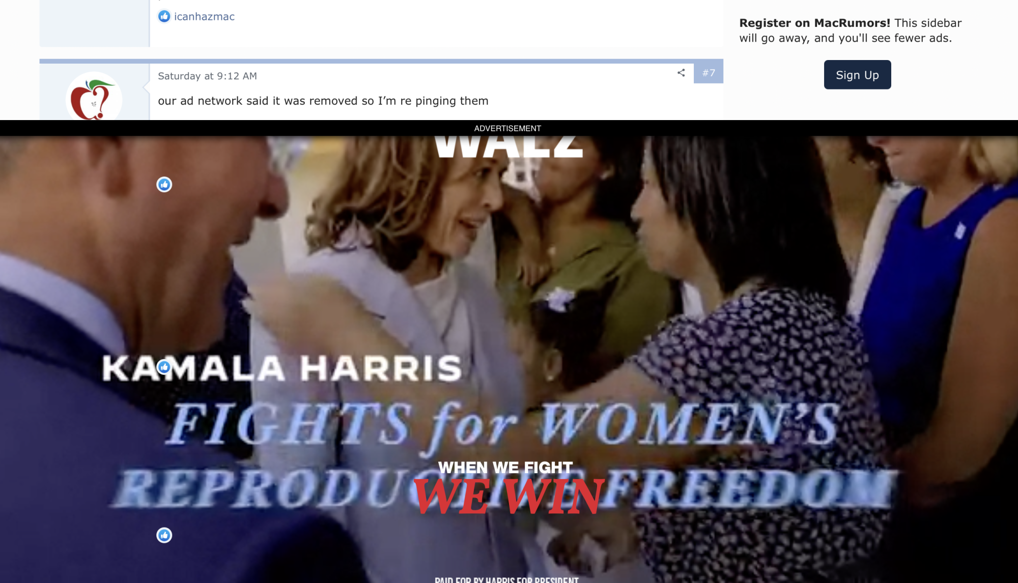 I am seriously pissed off with the Kamala ads when scrolling, its after every article, hell if I open one, it stops scrolling with a full page photo of a smiling Kamala on my face.. There is no way to close this, the only way is to wait for the ad to disappear.
