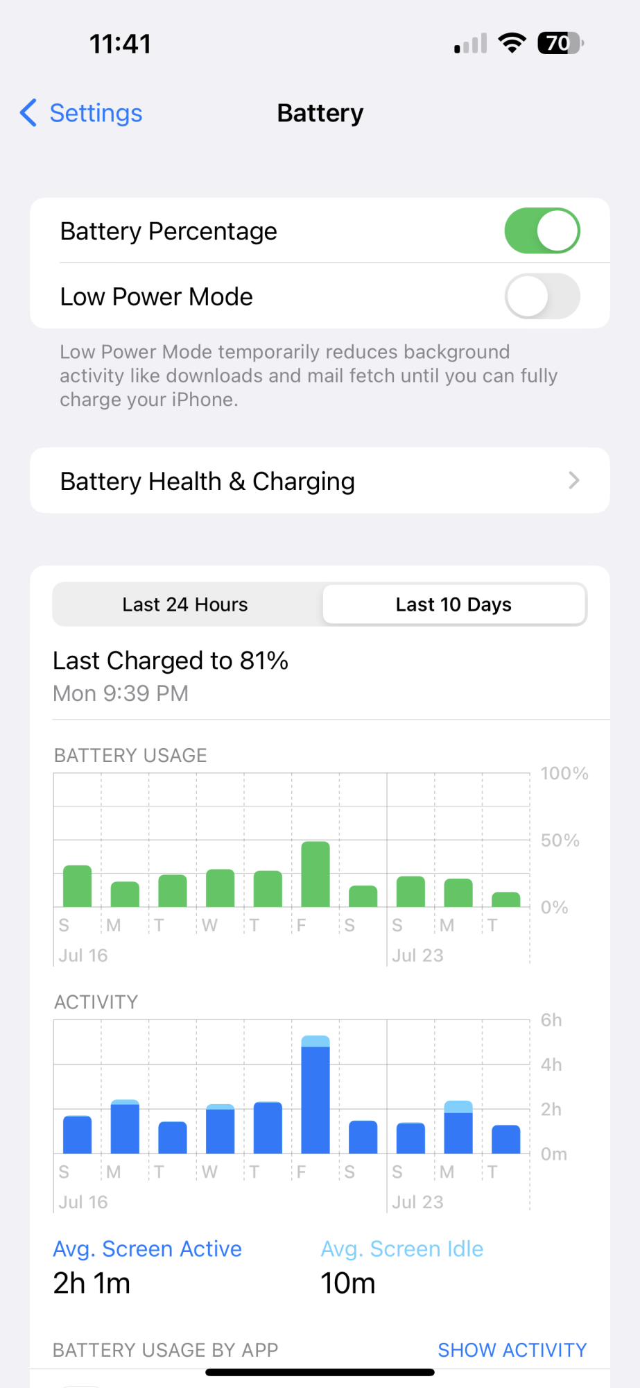 So from 6pm - 8am off the charger. I usually have to charge a bit on Sunday to get me through from Friday..