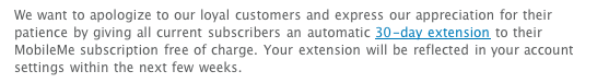 I've had MobileMe since the first day it was online, and I bought it 3 days later. I haven't gotten any extensions yet. I was a member when they announced the extensions.