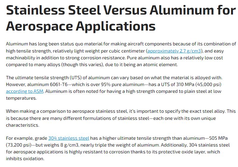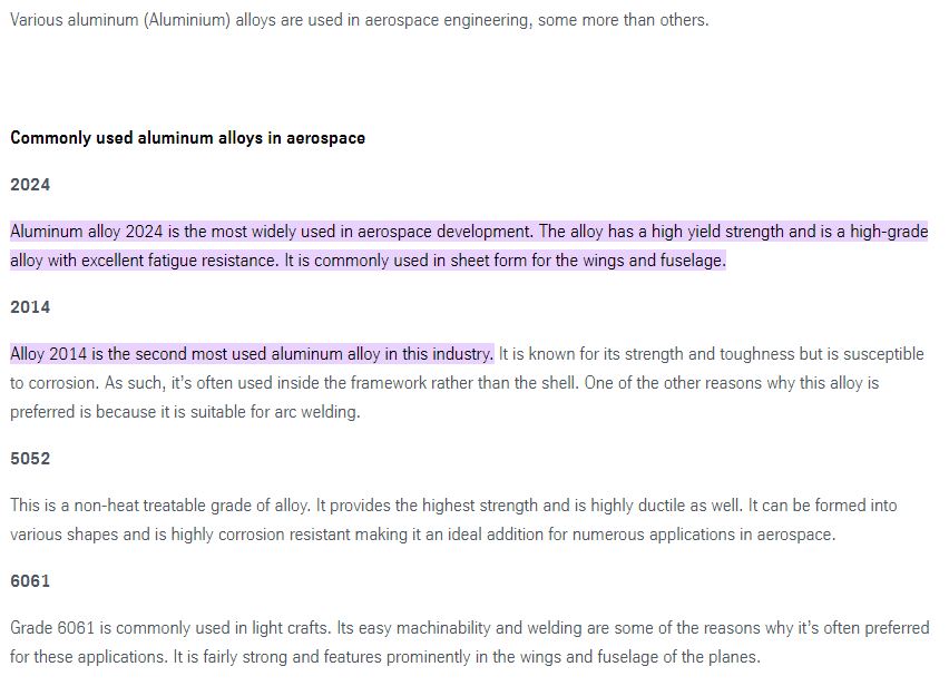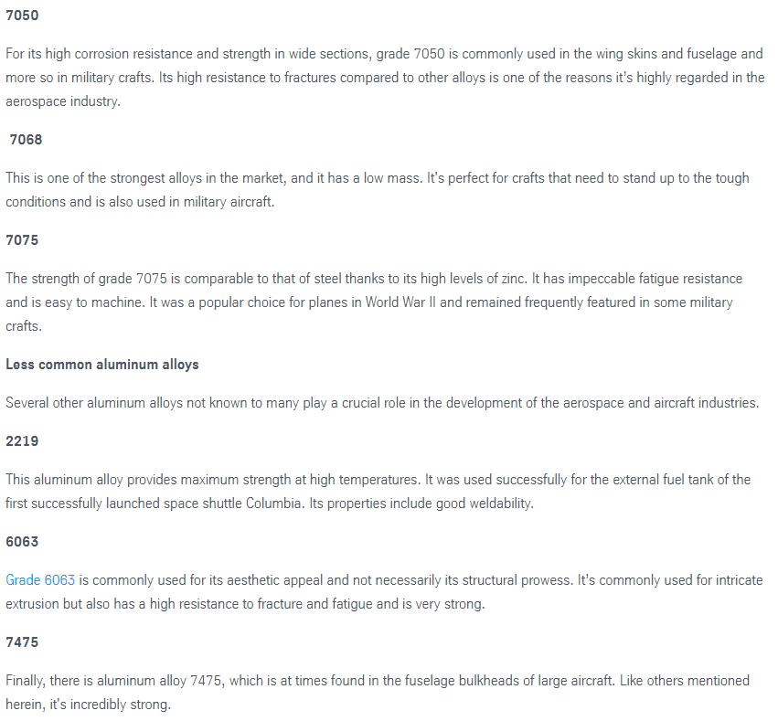 The aerospace industry does not use “only” 7075 — or even “only” 7000 series aluminum for that matter as you seemingly believe.