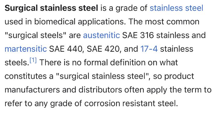 L specifically is the is most common surgical steel, L meaning low-carbon.