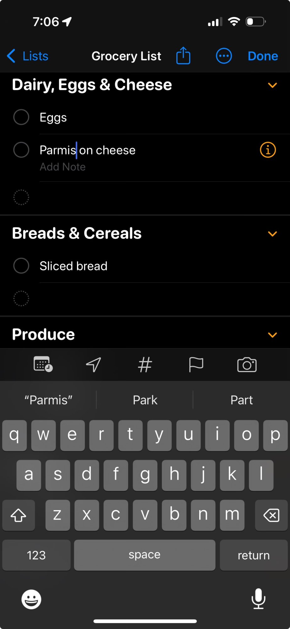 Siri: "No, but uh really, parmis on cheese really is a thing! I swear! I had some the other day."Siri gets stupider all the time. I asked it to add Parmesan cheese to my grocery list, this is what I got. I can’t wait for these upgrades.