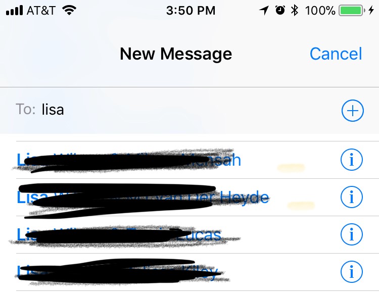 When I want to iMessage Lisa, I get all the suggestions of previous conversations I had with Lisa and other contacts