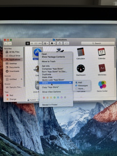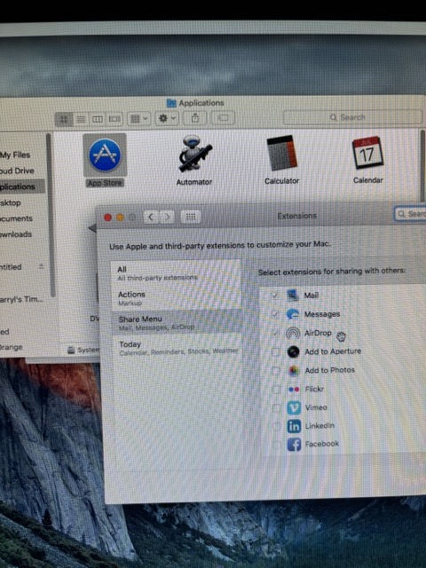 iMac 20" / A1224 / 2.66 Ghz Intel Core 2 Duo 6 GB with El Capitan 10.11.6 installed. I see AirDrop in settings but not in the Share menu when I right click on a file to try to send. Looking at the MacOS wikis, El Capitan is indeed compatible with AirDrop so wondering how I can enable this please? See photos