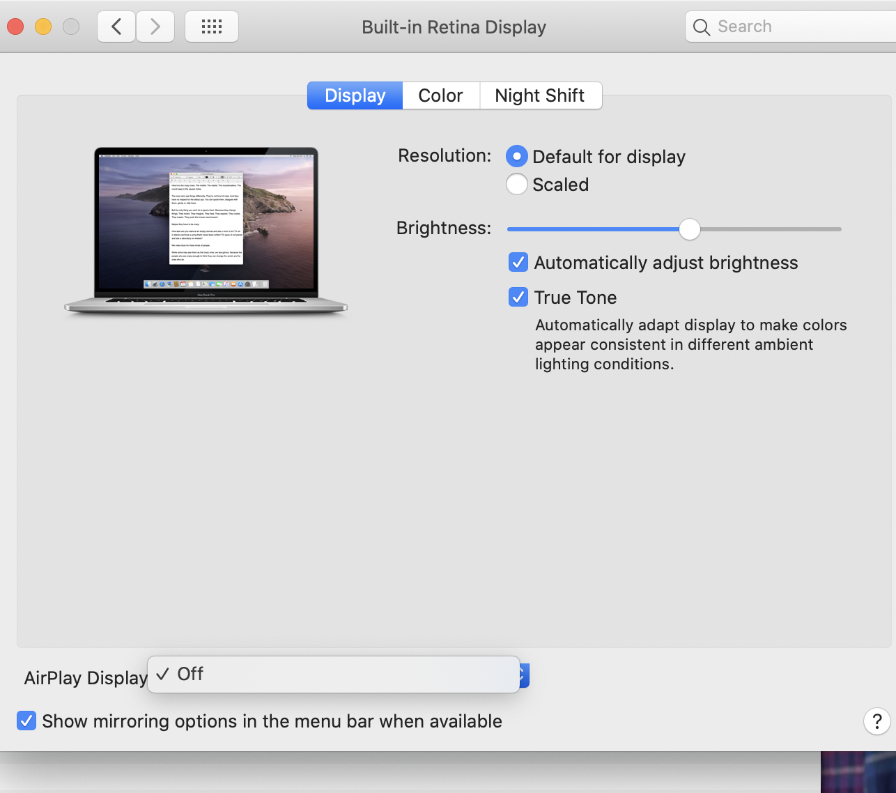 PS my Displays pref pane is identical to yours, so nothing wrong there.