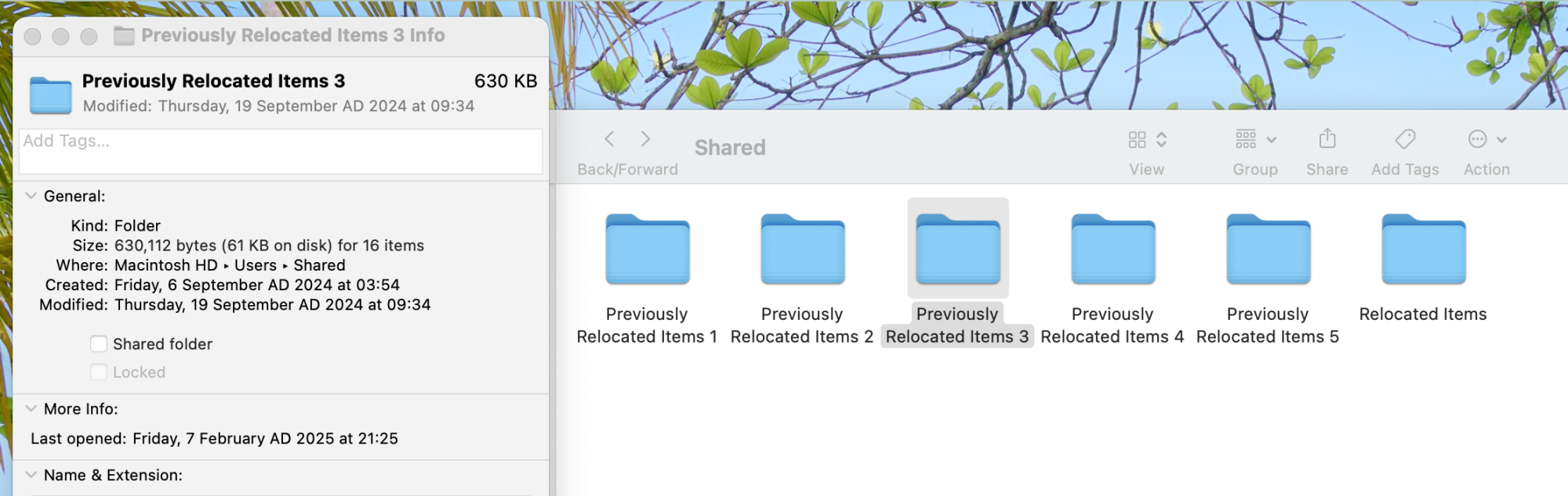 HOWEVER when I actually look inside the shared folder there are are a few files called "previously relocated items" (?) and the total size of all the folders combined is only about 3mb.