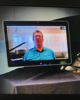 Watching CBS Sunday Morning this morning, I saw the host conducting a web conference on an Apple Device I did not recognize. It looks iPad-esque, but the camera is on the "side" instead of the "top" (when viewed from an iPad standpoint). And there is an Apple Logo (although I suppose that could be a sticker). Any thoughts?