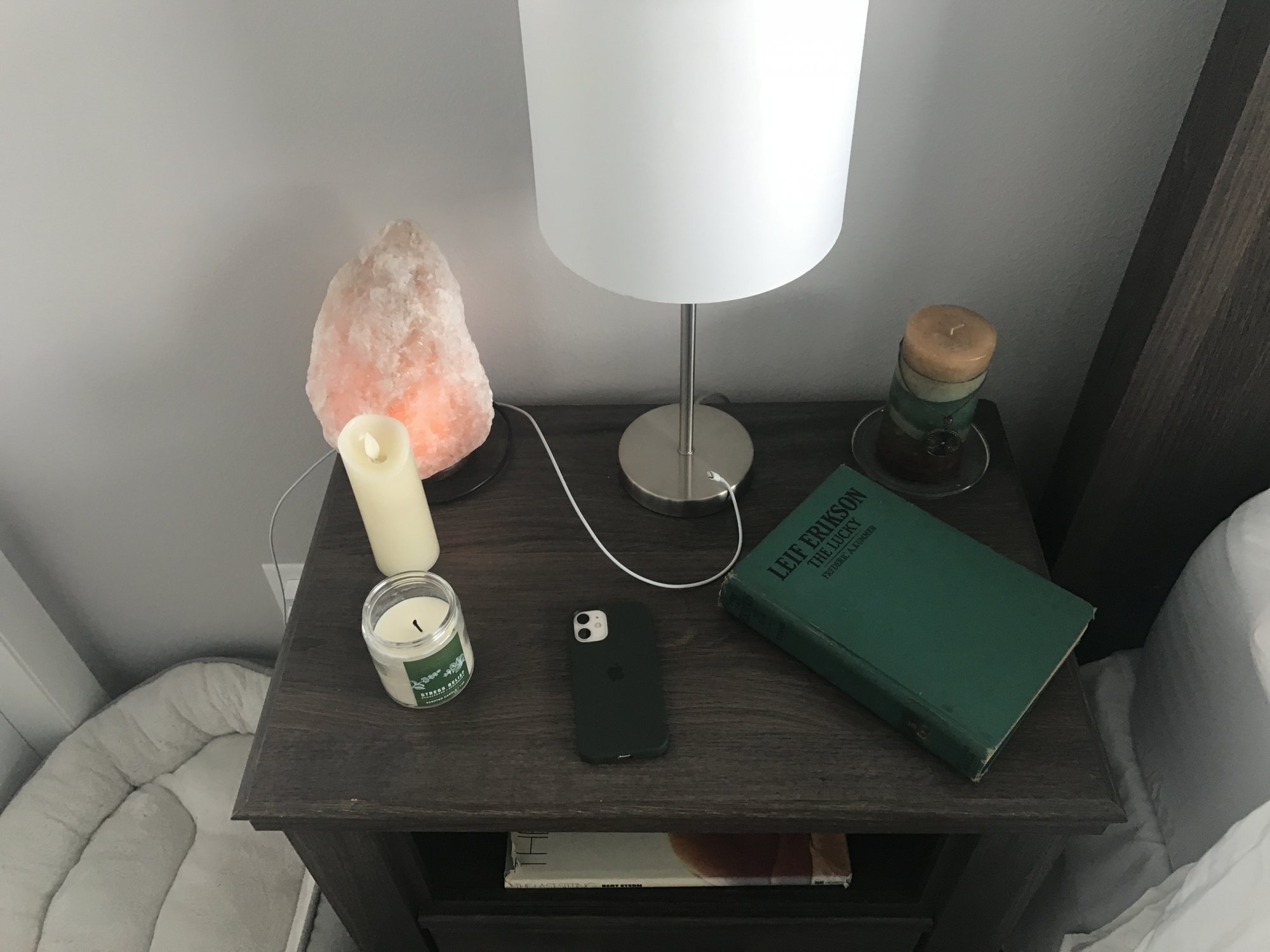 The Ocean’s going to be a strong contender but I’ve found the green silicone seems to fit nicely in our decor. This bedside table, for instance: