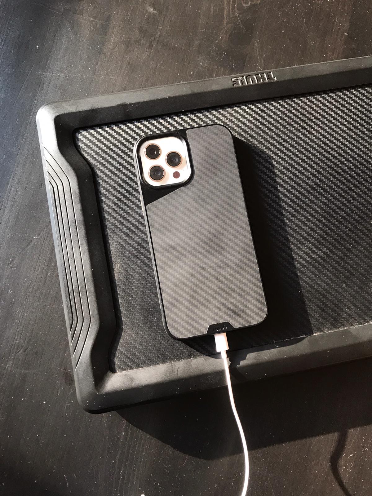 Got my friends and myself the Mous case for the iPhone 12 Pro Max; the too most case is a walnut with white vinyl carbon fibre textured vinyl on it!