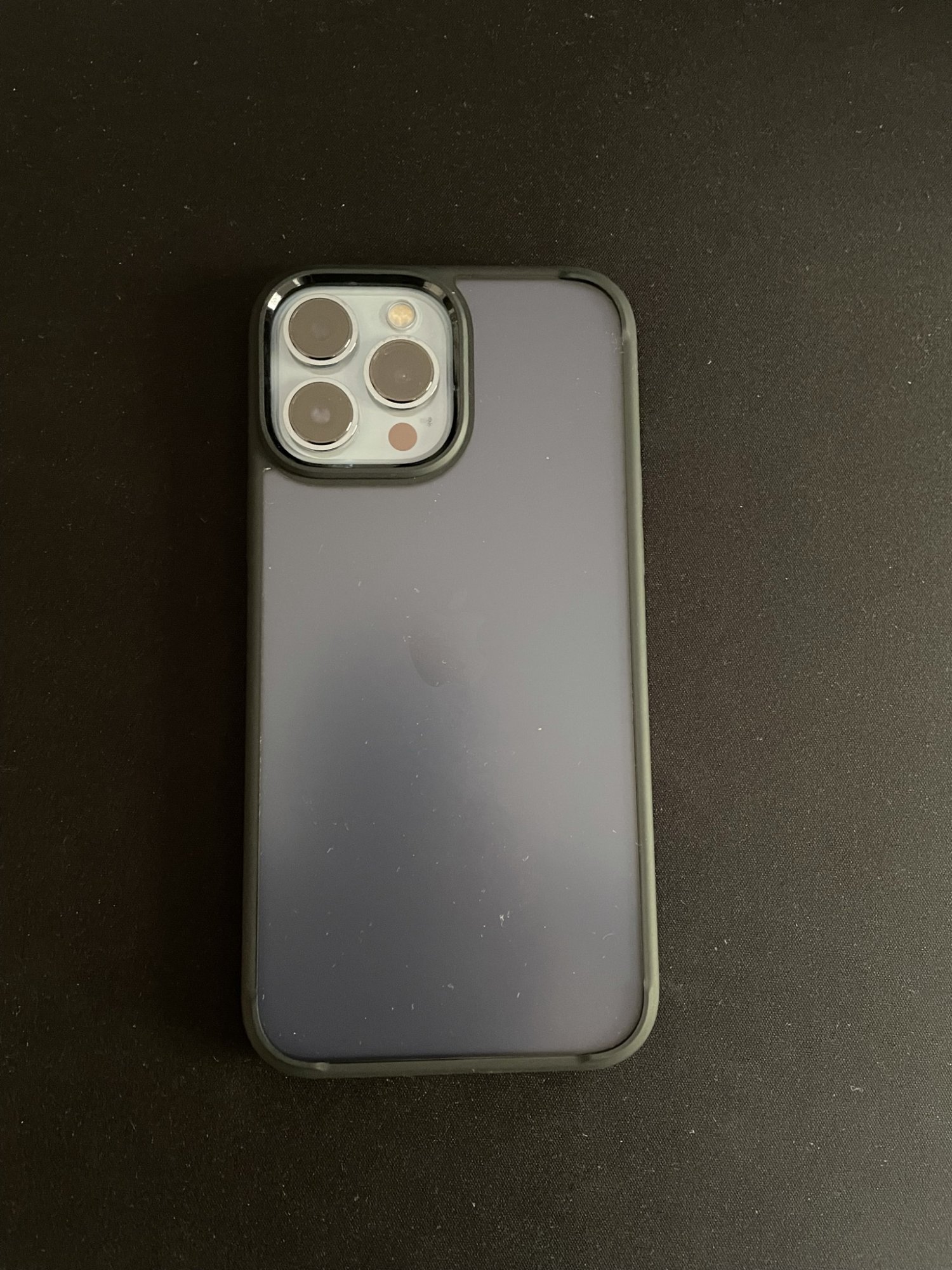 Spigen Ultra Hybrid matte black back just came in for my Sierra blue 13 pro max. Looks pretty good with the matte smoky effect on the back panel. The seams and edges are great. (Pardon the dust but about to hop on a zoom, no time to clean and stage 🤣).