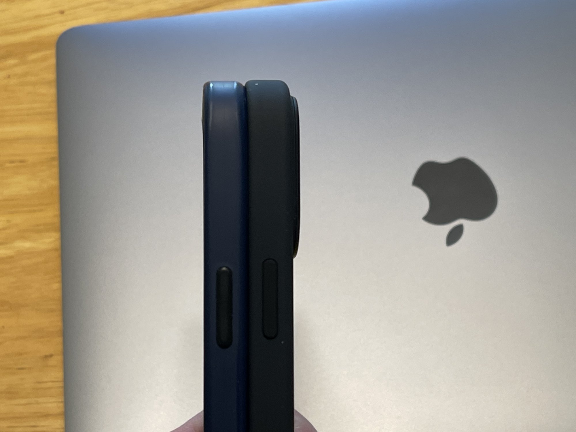 case is thicker tooI always like the grip of the apple silicone cases so that’s what I got for my 13pm. Here’s it compared to my 12pm silicone case. The 13pm silicone case feels sturdier, but that could be because my 12pm case is used. Also, the 12pm fits in the new case fairly well. There’s just a slight gap on the side of the camera cutout due to the 13pm camera bump being larger.