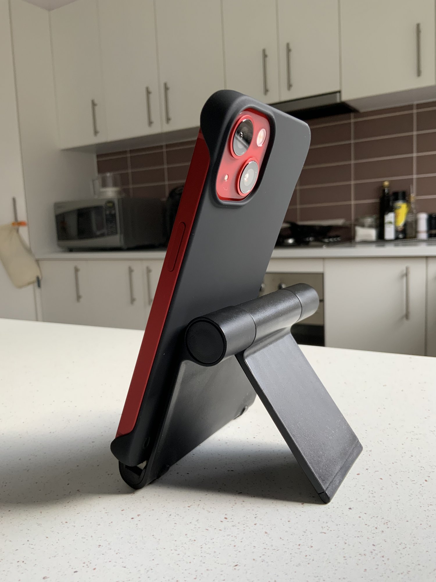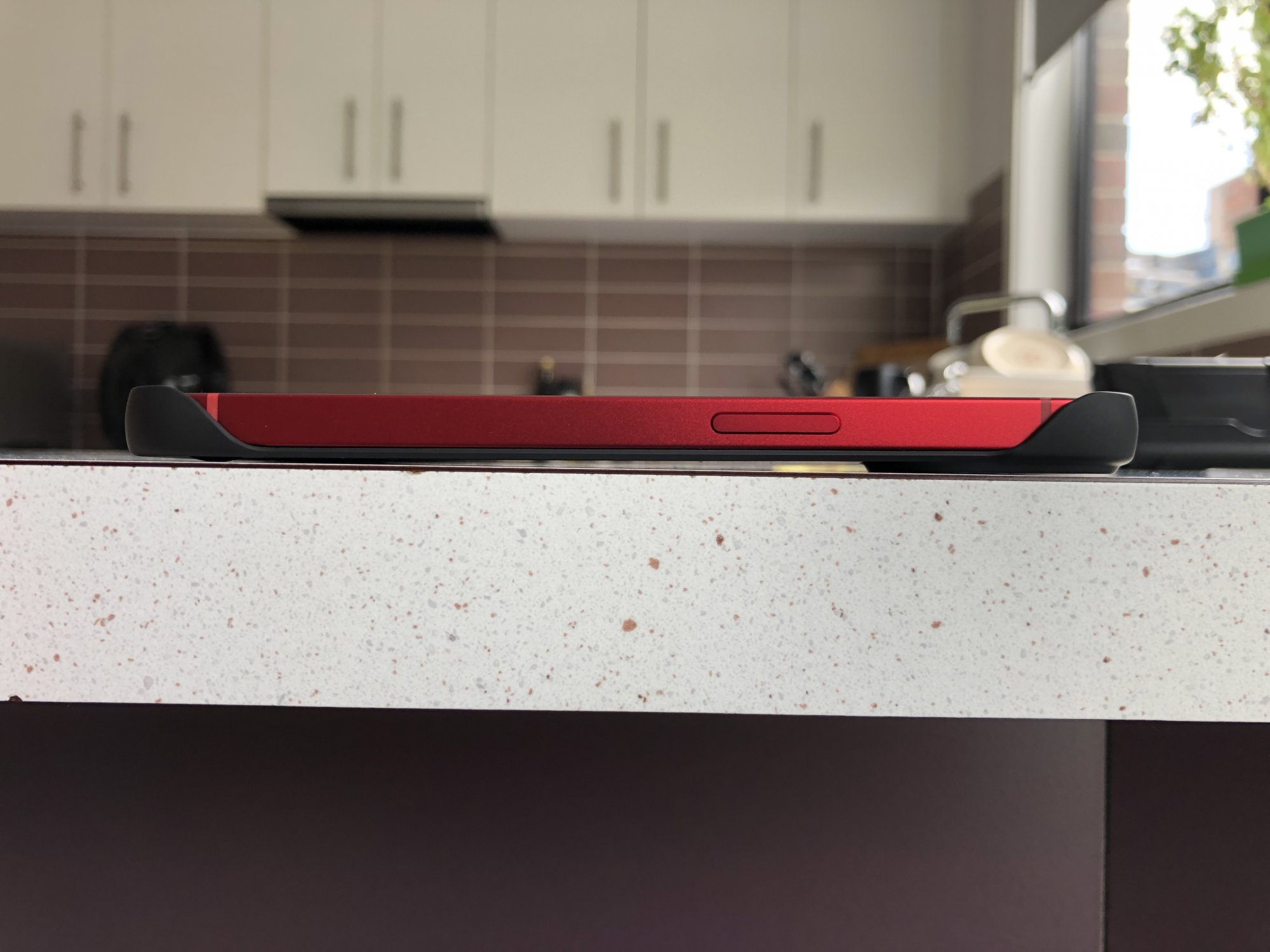 The plan to match it with an ultra minimalist, open-sided, black case went very nicely. The blood red aluminium sides & front border of the 13 deserve to remain exposed imo, & this case ‘lets the blood run free’!… 🩸🩸🩸 😏