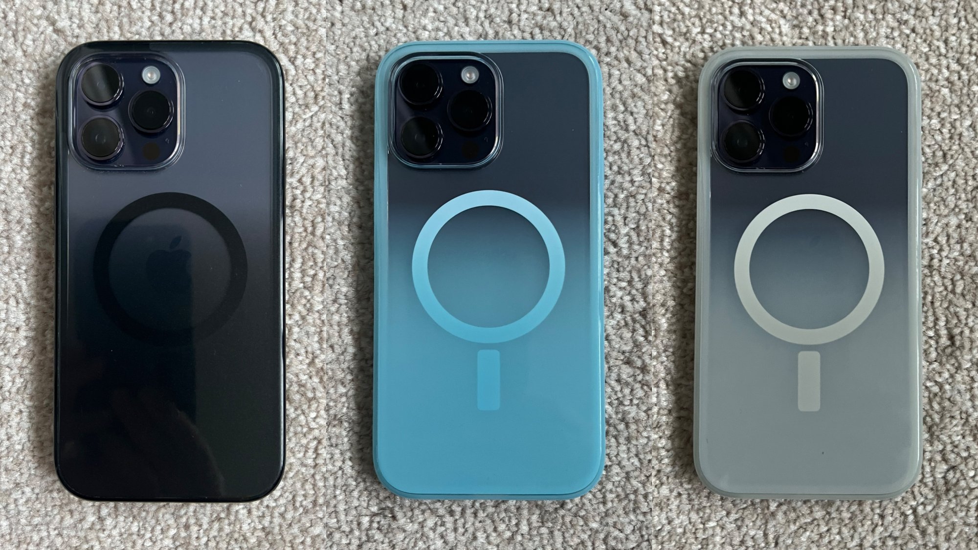 Thanks for the pic! The black looks really sexy.Not sure the pics will help, but it’s great, fits tight around the edges and feels good. Favourite is the black, in the darkest parts it has a shimmer as it catches the light, very subtle, not glittery. Also pictured, the blue and silver (a kind of off white, cream colour). All housing my deep purple 14PM. Sorry, lighting may not be the best! - the topmost section is clear so shows the natural phone colour.