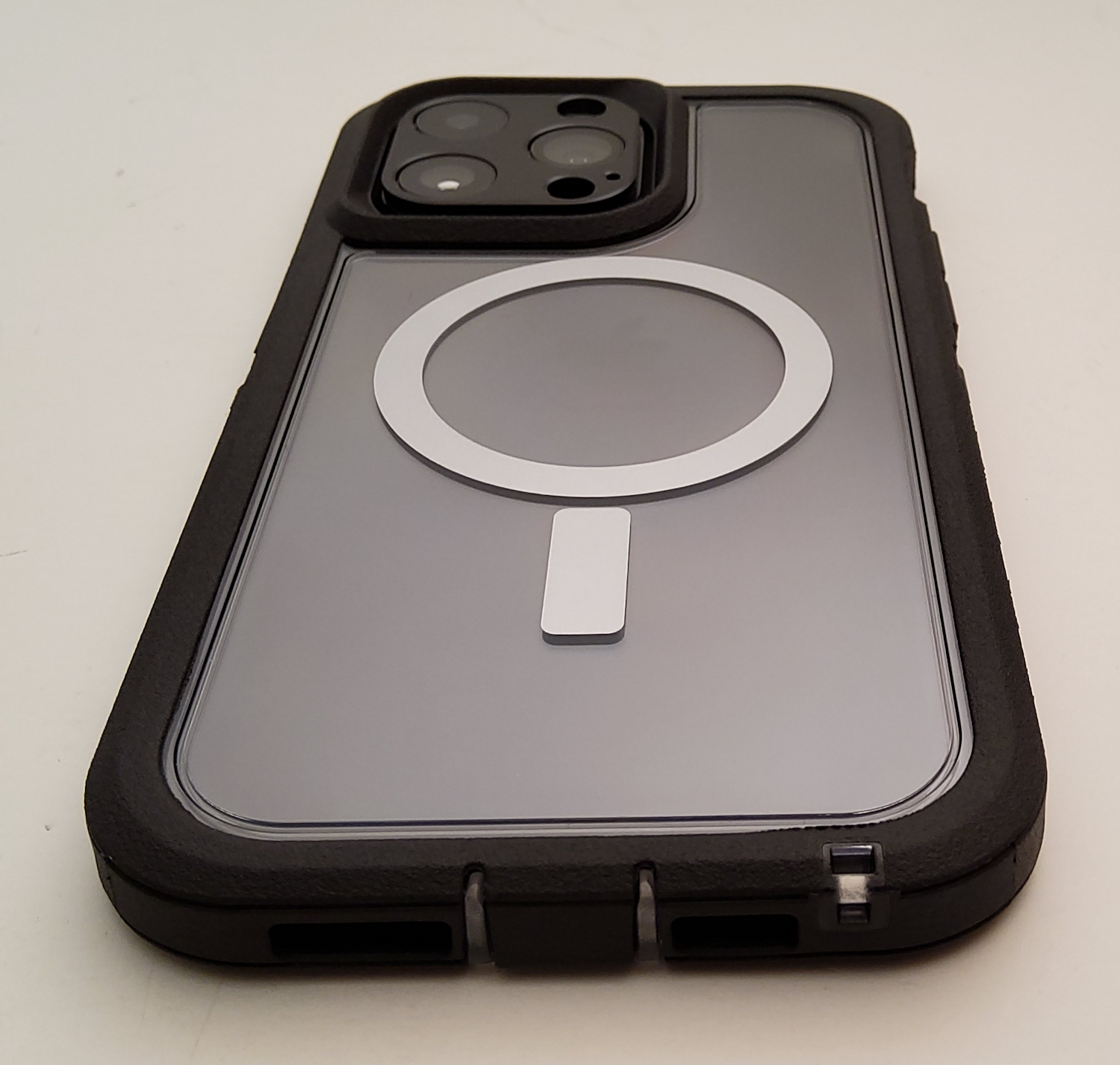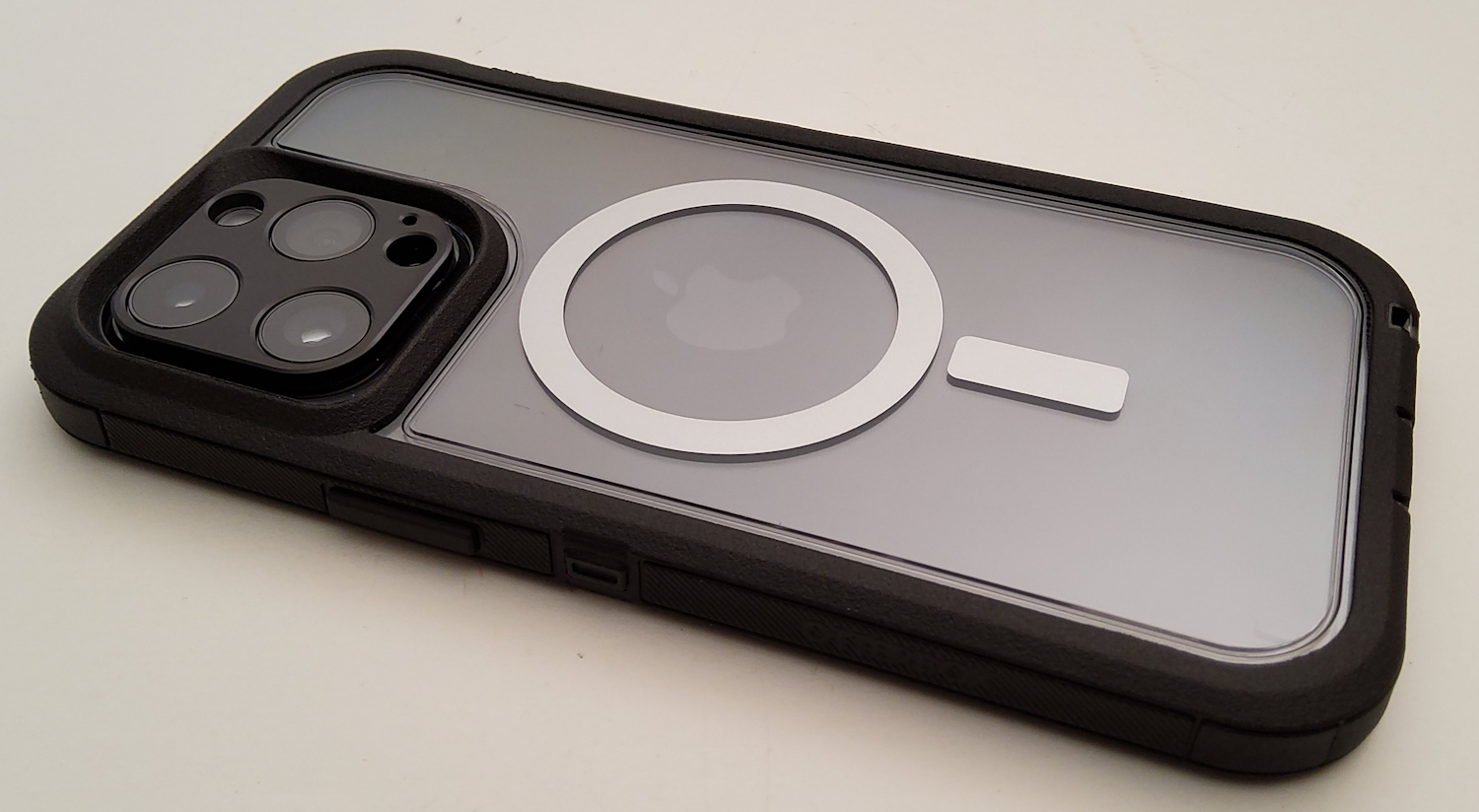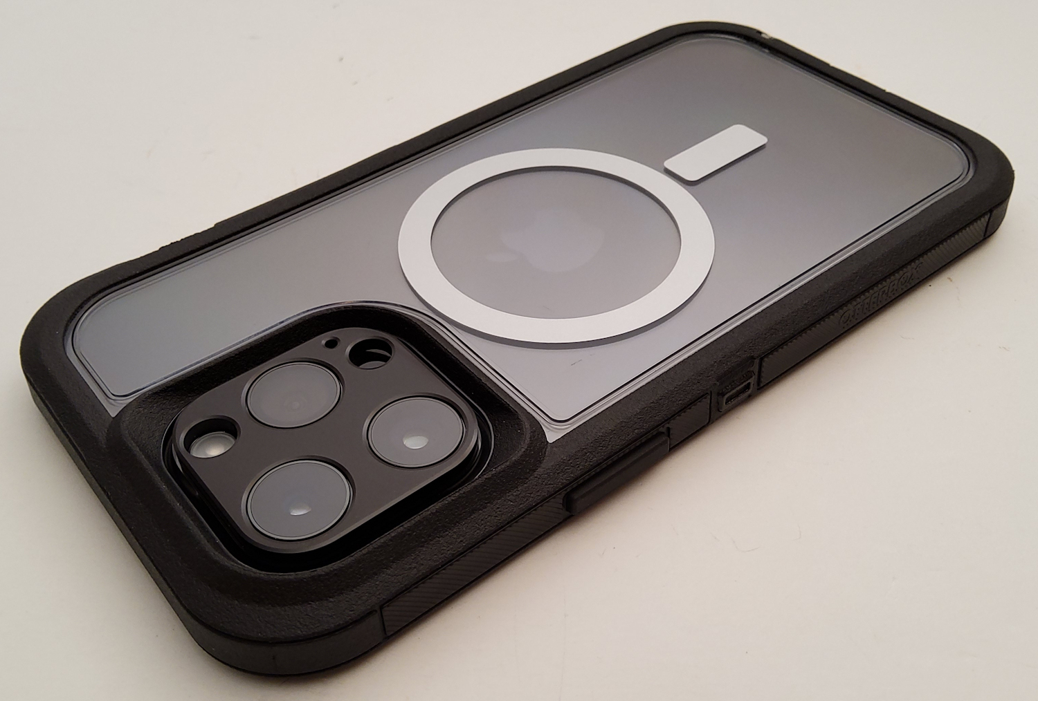 After polishing it with some plastic polish, it's looking pretty good. The scratches are still there but you can't notice them in the pictures. The case is nice, looks fantastic, wth great grip and pretty good Magsafe strength. Otterbox just fused a second piece of clear on the back to sandwich in the Magsafe magnets. Overall, a pretty decent case but like Joe said, need that black rim piece for the front. Couple fast pics: