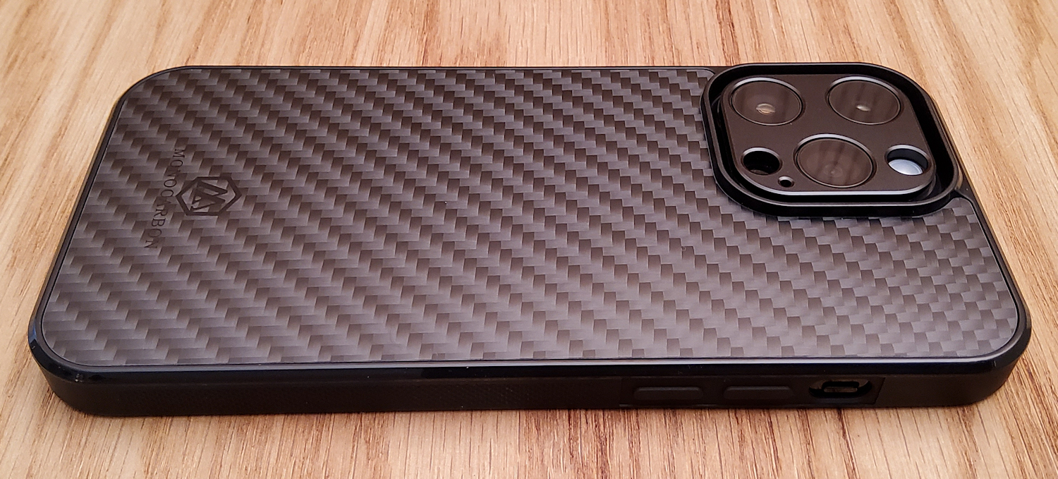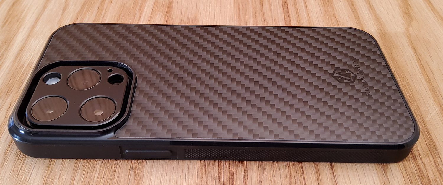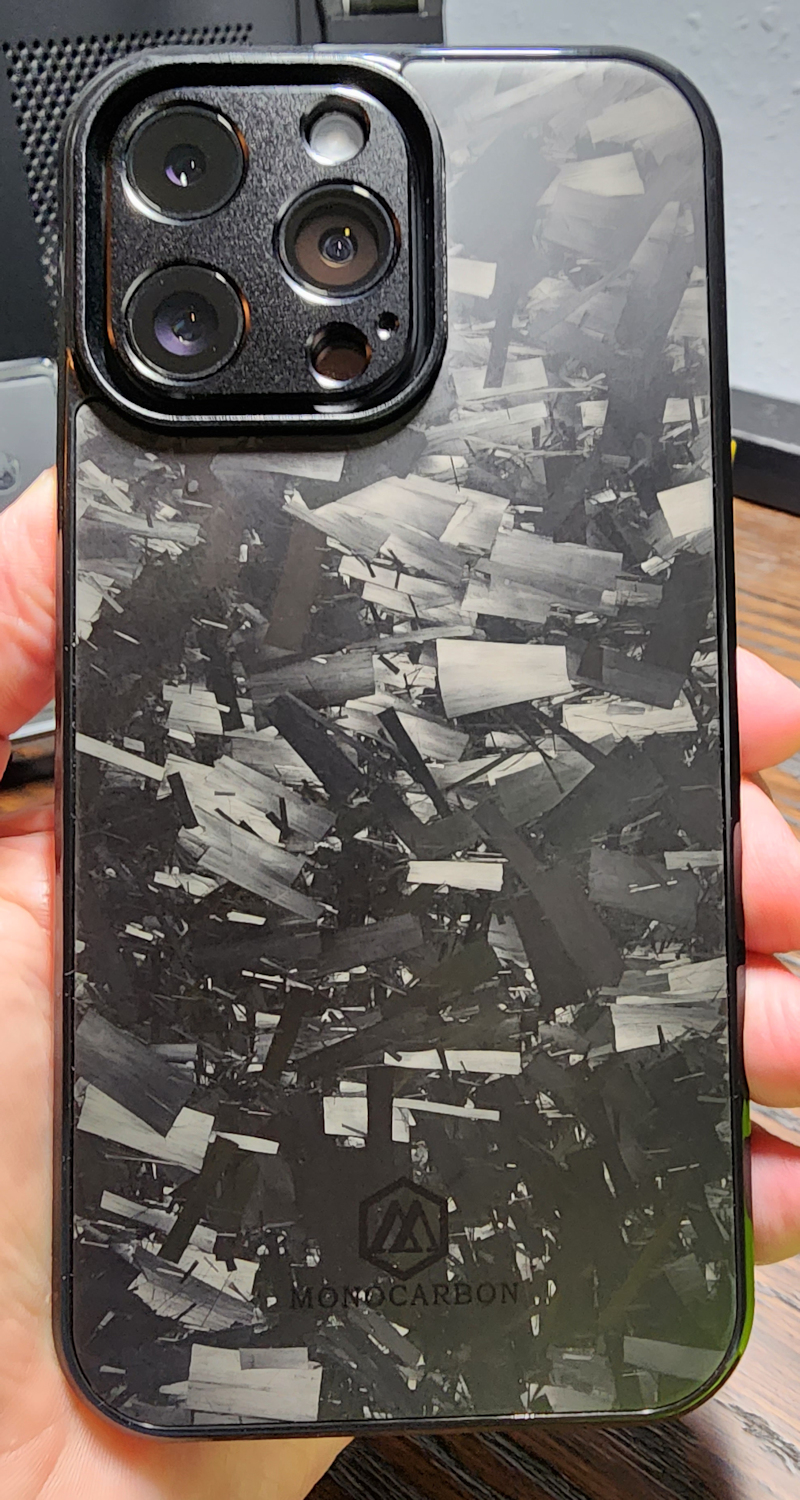 Monocarbon Carbon Fiber case. This case is made is 100% Real Carbon Fiber, not Aramid. The case is absolutely beautiful and stunning to look at in person. The fit is very tight, the grip is phenomenal, good buttons, STRONG Magsafe and it adds hardly any bulk to the 14 Pro Max at all. Also has a felt lining on the inside to protect the back of your phone. Not a very big lip around the screen and it has symmetrical cutouts. Love this case. Here are some quick pictures: