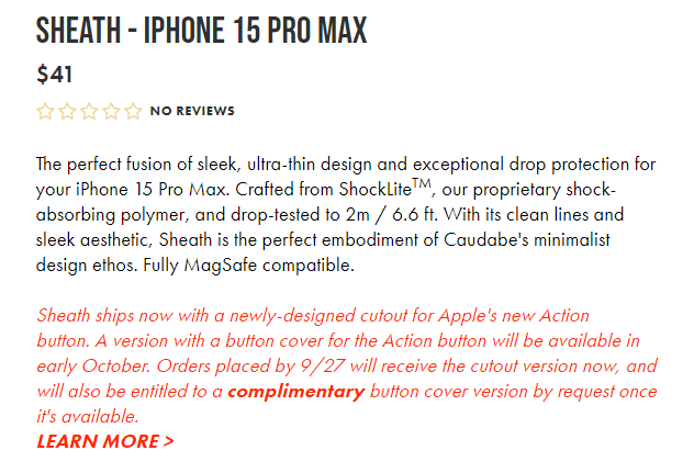 Yeah I saw that but I don’t need two cases that are so similar and don’t mind waiting for the one I want. Plus, always wanted to try out a clear case!If you read the website, it says that if you order the Sheath before 9/27 you can request the button cover version when it comes out in October. It will be free.