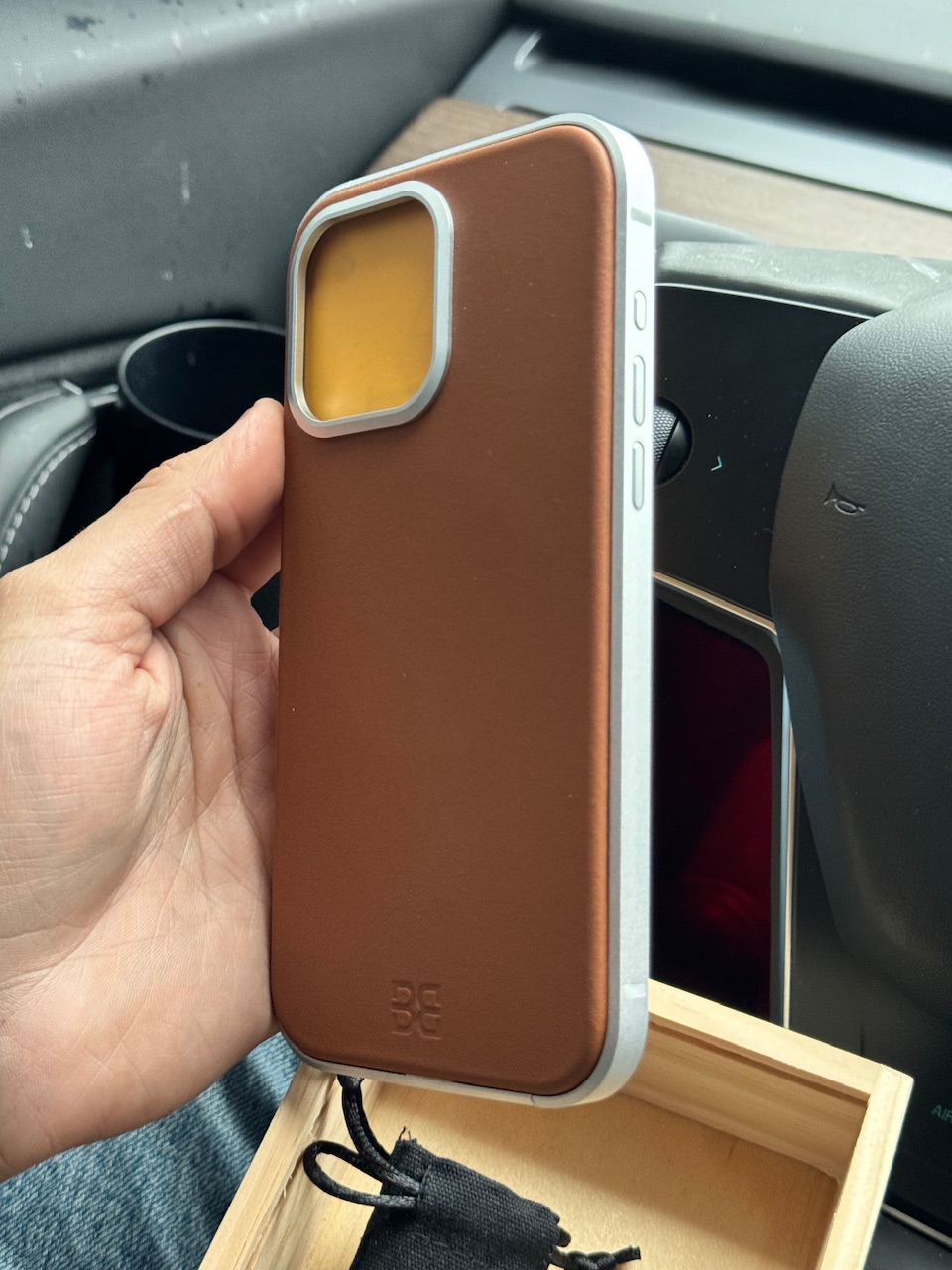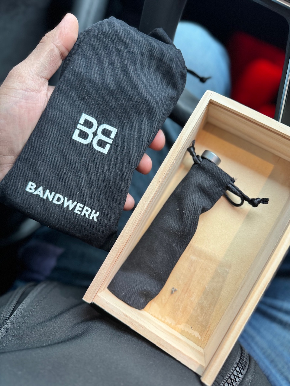 Bandwerks classic case came in. I’ll update with my thoughts in a few days. First impressions. Loooooove how this leather feel. And love how the phone looks from the front. Reminds me of the iPhone 4 where the metal bumpter stuck out. As I feared the case does make the phone quite a bit more wide than I liked. But as a plus this case is a lot thinner than I expected. It’s on par with the Andar for thickness. Looks damn good tho. Will definitely rock it for party’s or weddings lol. Might order the black too. Presentation is top notch, it comes in a wooden box with a high quality screw driver and little slip in soft touch bag things for the case and screw driver. Also has extra screws.