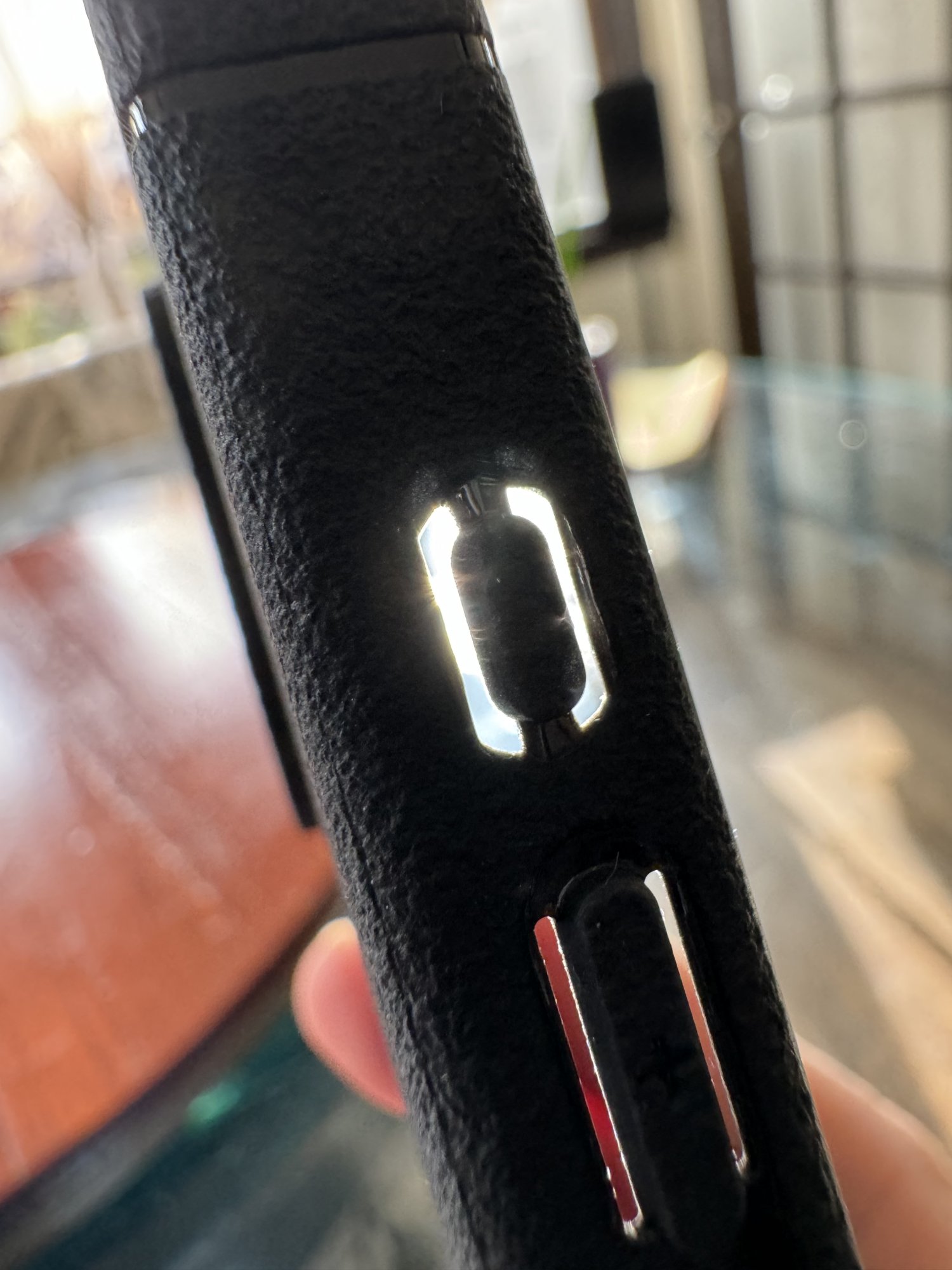 Kind of like the black leather Mous, MagSafe bulge on the backThe only obvious change is the addition of the microfiber lining. My hypothesis is that they had to make room for the lining by thinning the back material, which could theoretically cause this problem. It’s only a guess.
