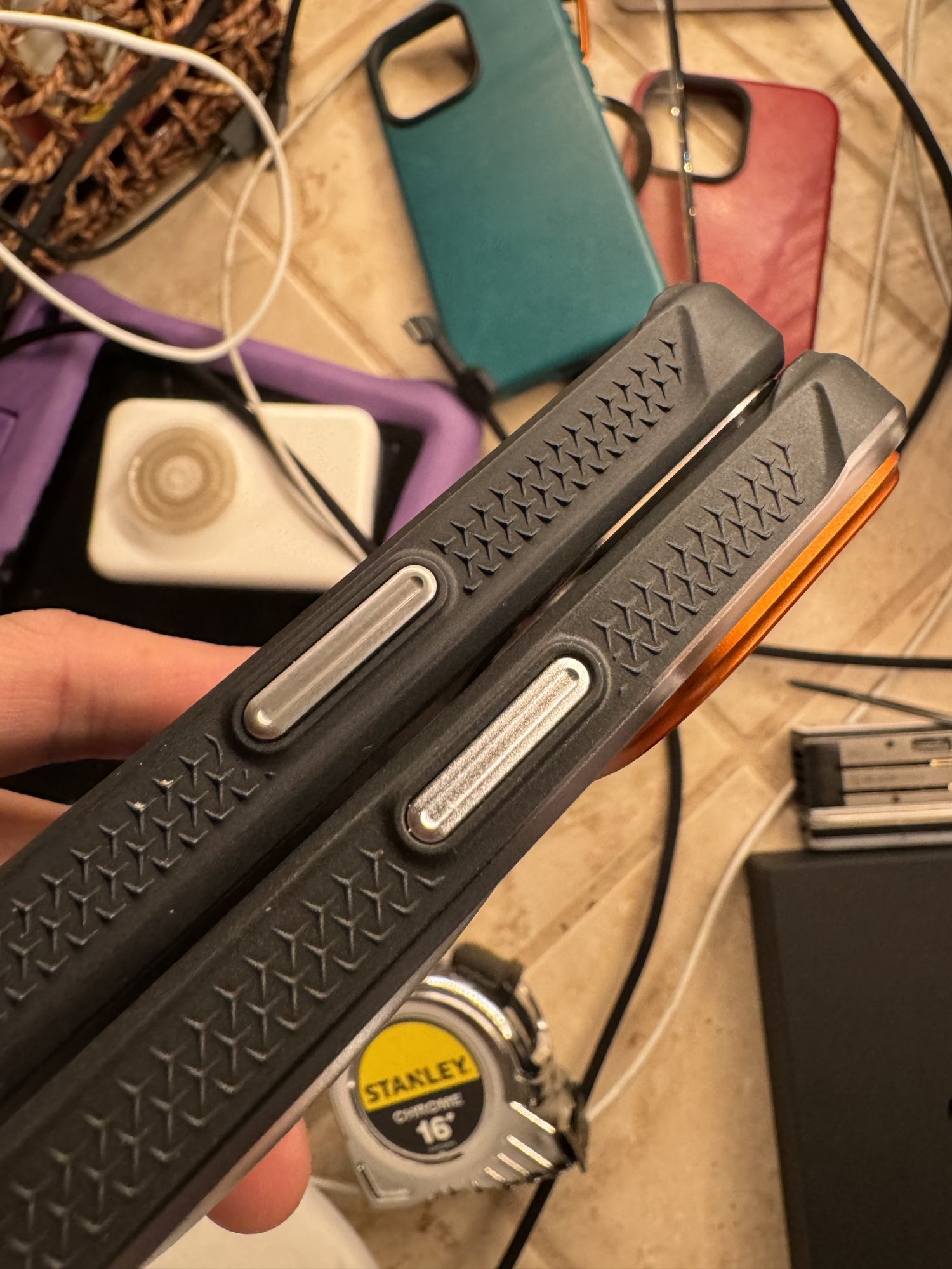 I am currently rotating between this Torras S2 and the Benks Armor Air, weight wise they are similar and I am trying to strive for the thinnest case possible. The Benks being aramid in material is obviously more protective, but the sharp edges here and there makes holding it rather uncomfortable at times. At the moment I have settled to the Torras, it feels so smooth in my hands, buttons are in the right place with the right thickness, the type-C port opening is large enough to fit a fat head cable, and the edges really fits the phone's shape well despite the material being somewhat brittle. But I agree the phone probably won't survive a hard concrete drop in this, lol. I got the Benks Armor Pro ready to deploy, whenever I feel like abusing the phone for the day.Last one I have to share is one I never see spoken about here. The Torras Slim Fit with MagSafe.