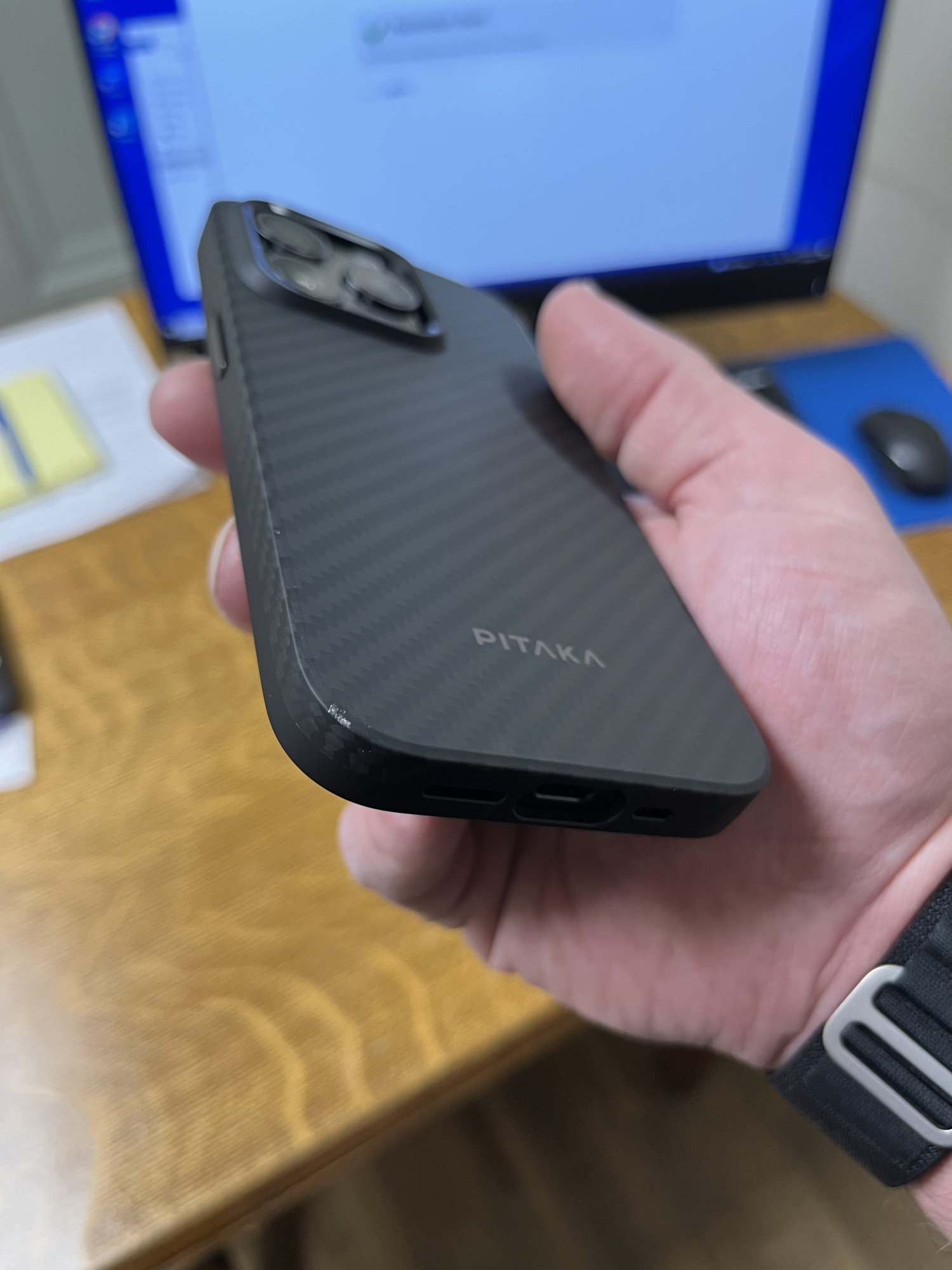 Unfortunately my Pitaka MagEz Pro got a chip in the corner just in my back pocket… must have scraped it on something at work without noticing… pains me to put a blemish on such a nice looking case, but that’s my OCD.. still rocking it, seeing how long I can last with the Aramid before my OCD sends me to the nut house.