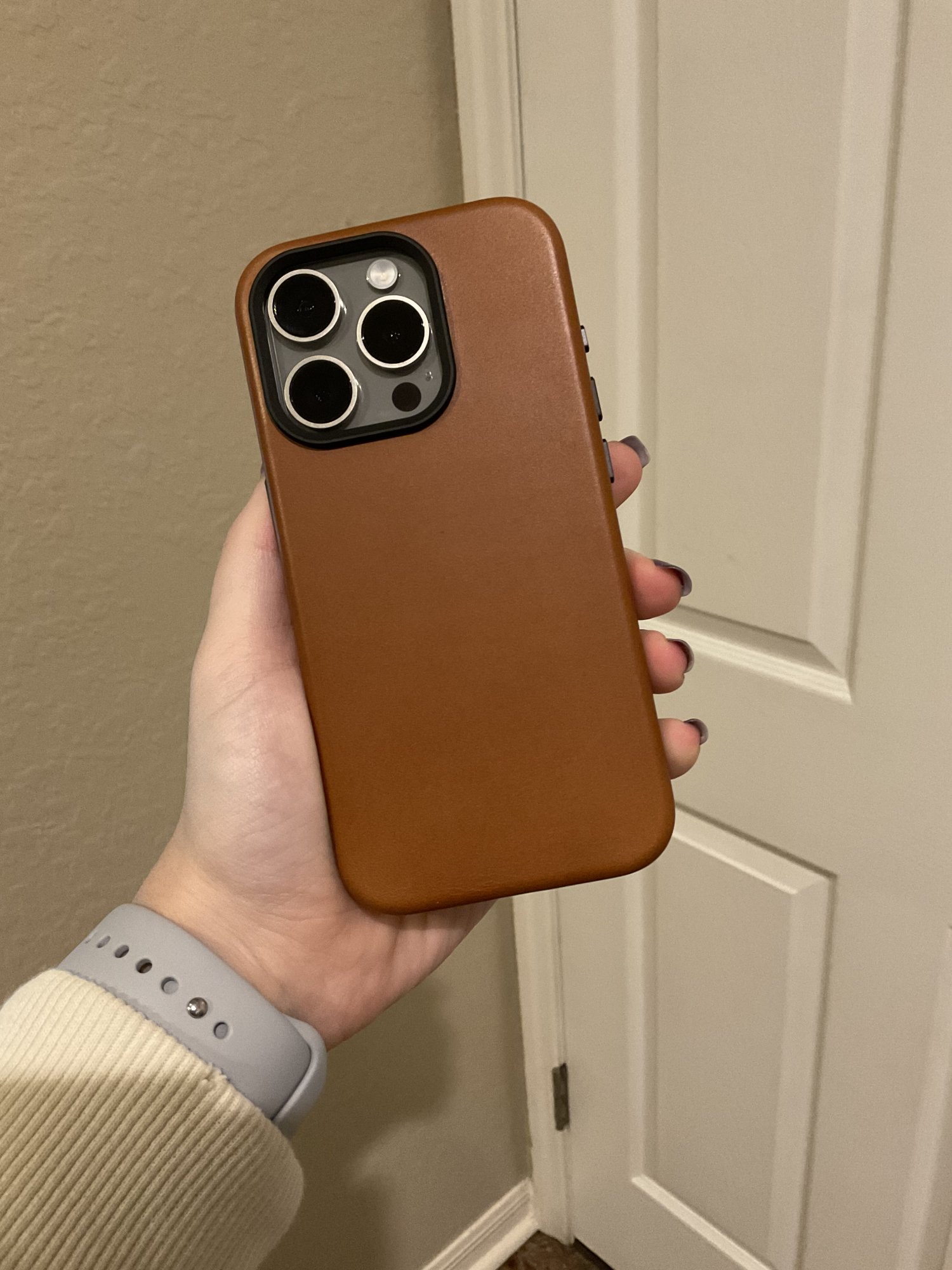 Next up is the Vaja V-Mag Leather in ruby wine. I used it over the weekend and it's fantastic. Soft, supply, grippy, wonderful smelling leather. It doesn't have any kind of slippery coating that you have to work through before the leather becomes grippy. I didn't think I'd like the fully open bottom, open button areas, and slightly exposed top, but it all works for me. Having direct access to the buttons is surprisingly nice, and the shape of the case below the buttons is a comfortable place to put your fingers when holding the phone. The entire back of the case is magnetic, it'll stick to any magnetic surface like your fridge, so the MagSafe strength is