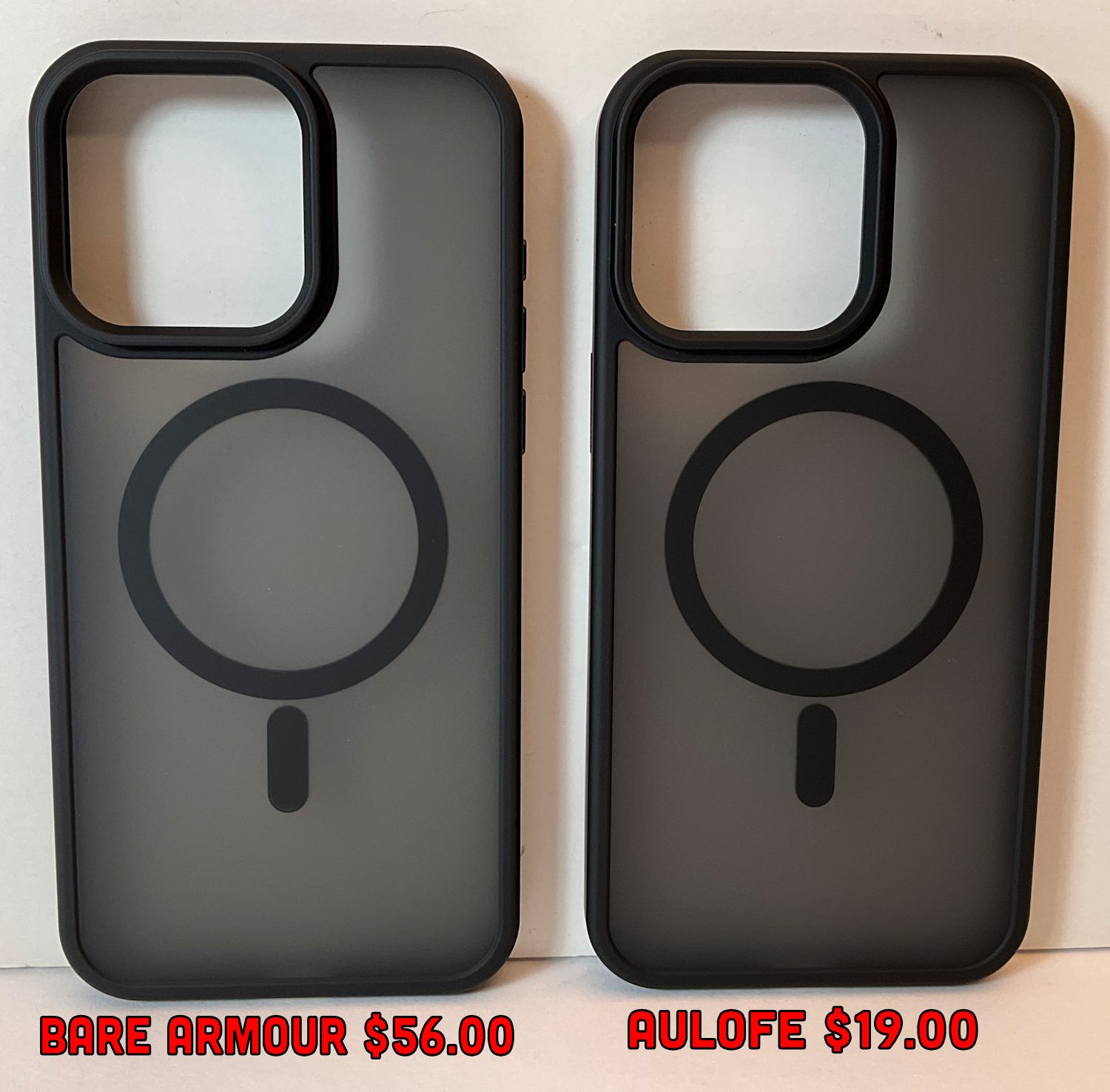 Bare Armour VS AulofeBoth of these cases are 100% exactly the same. The Bare Armour cost $56.00 has the Bare logo stamped on the side and takes 30 days to receive from China. The Aulofe cost $19.00 on Amazon and takes 2 days to receive with Prime shipping. These are both fantastic cases and the only con is the soft touch finish which attracts fingerprints/smudges. Here are some side by side pics:
