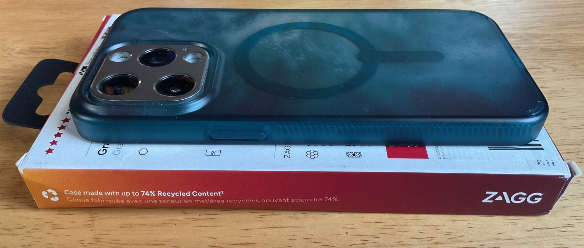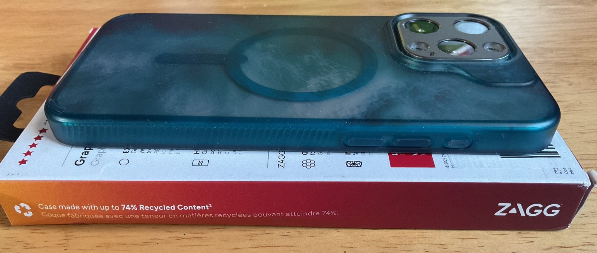 Eventually, I succumbed, since I didn't have a frosted-type case (I do have the great $20 Spigen clear case, the first case I got for my 15PM). Having a couple of the other Zaggs, I was intrigued by the Milan Snap in "Ocean", and snagged it on an Amazon sale+coupon a week ago.