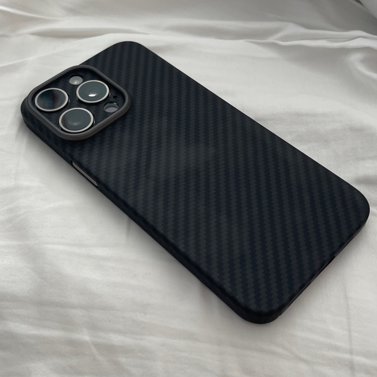 It’s got a nice soft touch feel very similar to Apple Silicone but not grippy but much smoother. Fits very snug and metal buttons are very responsive (button for action button too). MagSafe magnet is nice and strong and got a nice matte minimalistic look.